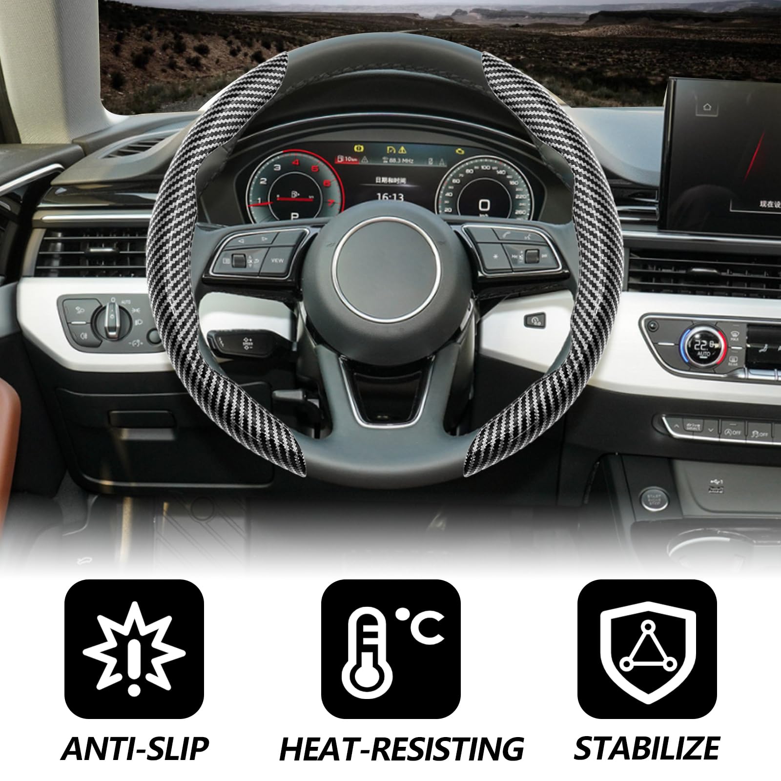 High Quality: Standing out for its durability and easy maintenance, carbon fiber material, the leather Steering Wheel Cover is light and breathable, wear-resistant and is not easily deformed.