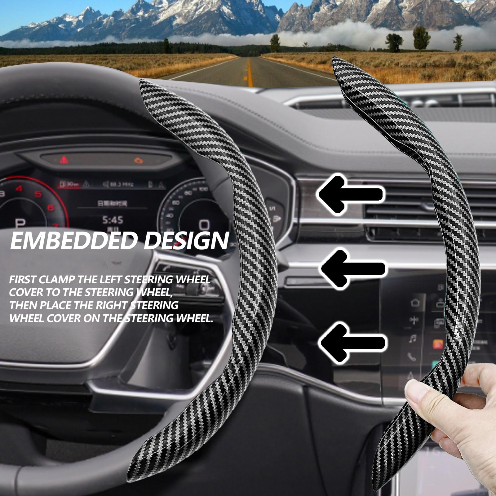 2pcs Car Carbon Fiber Anti-Skid Steering Wheel Cover Non-Slip Segmented