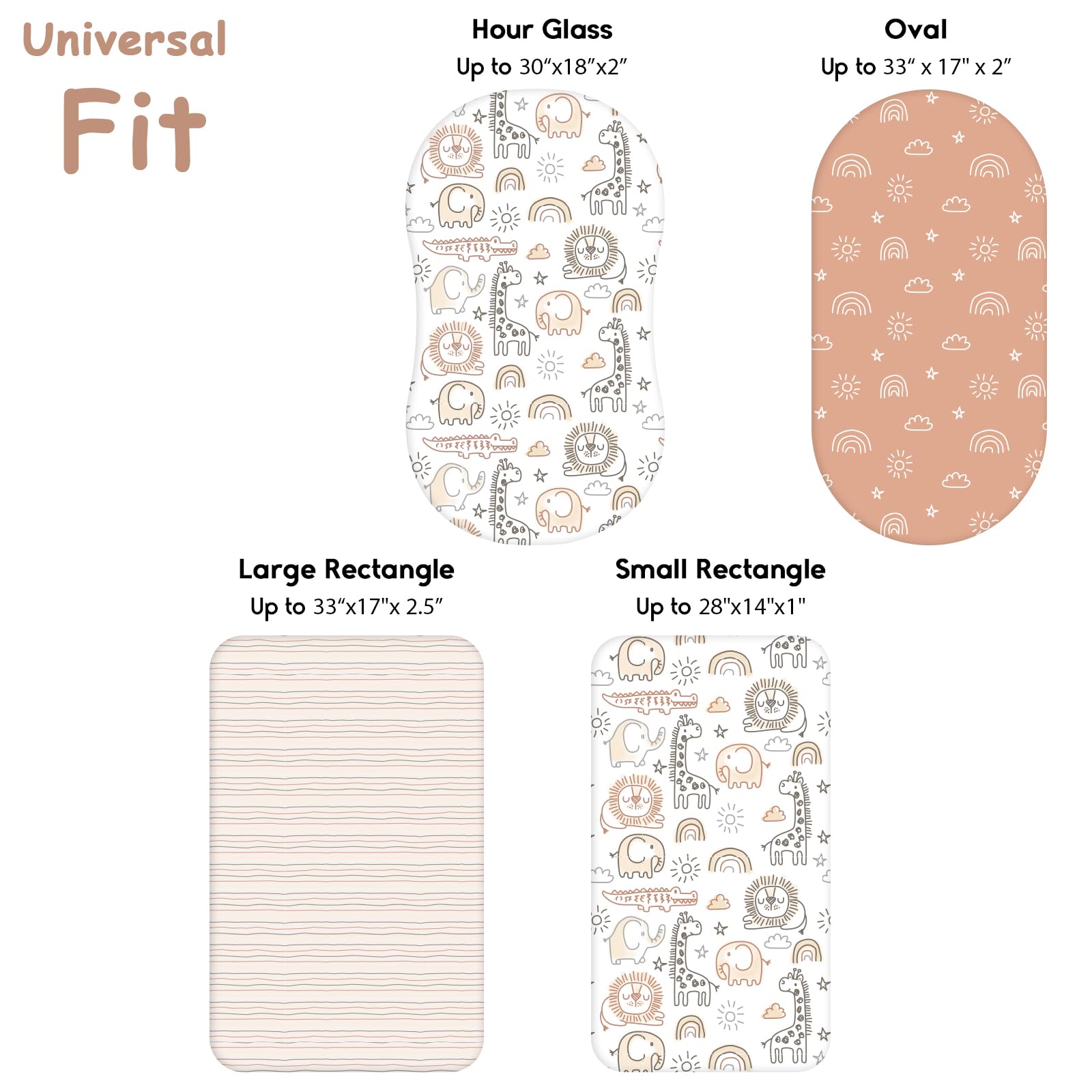 Perfect Fit: The Yoofoss bassinet sheets measures 32x16 inches with a 5-inch deep pocket , designed to fit a variety of mattress brands. This versatile sheets is suitable for standard oval, round, rectangular, and hourglass-shaped cribs, providing comprehensive protection for your mattress.