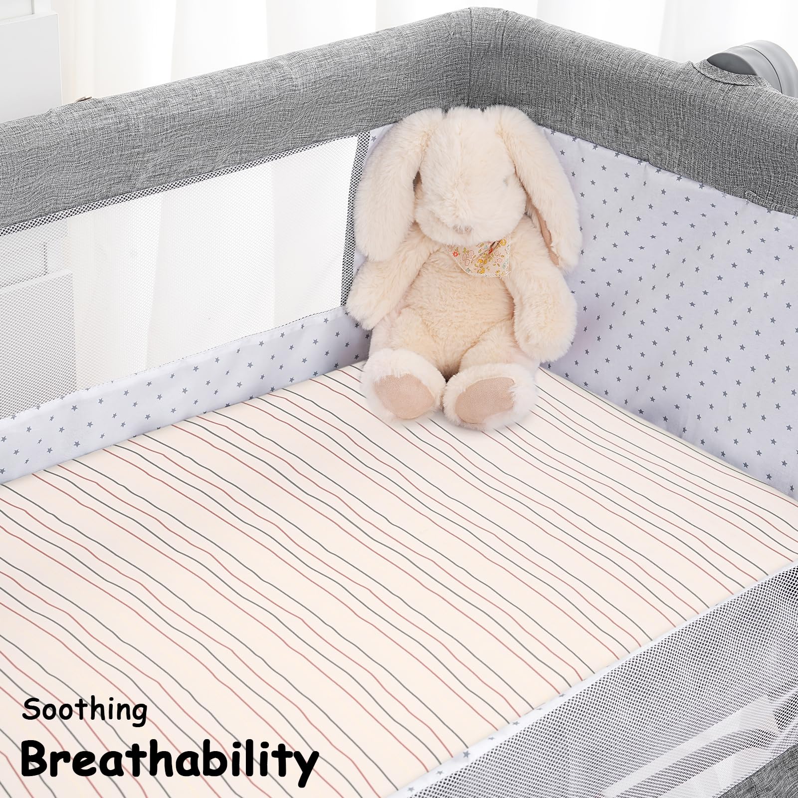 Quick & Silent Installation: Featuring SnugFit technology, our bassinet mattress sheets is crafted from stretchy fabric, making it easy to install and remove. The securely stitched elastic edges ensure a snug fit, allowing parents to quickly change sheets during late-night diaper leaks or spit-ups with minimal fuss.
