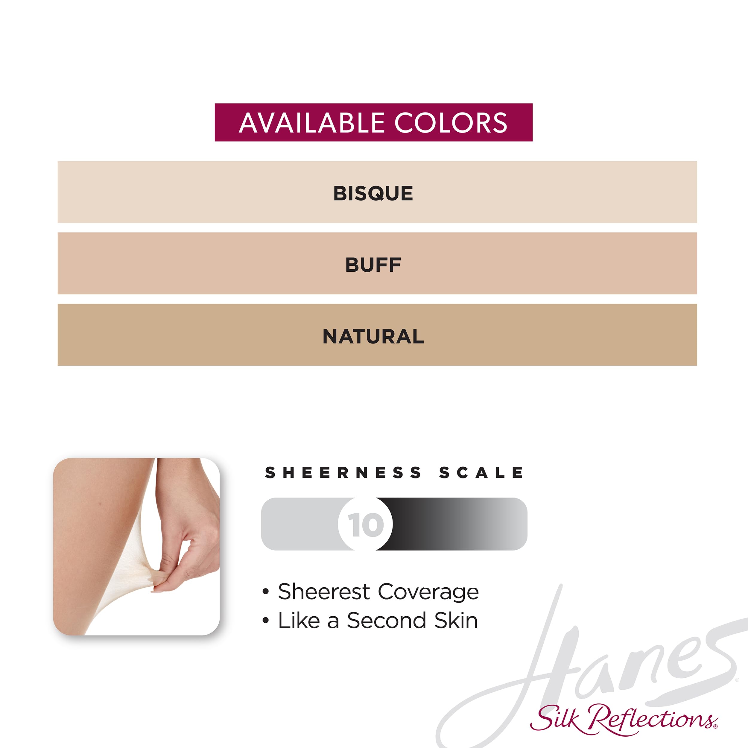 Description Featuring a control top design, these tights offer gentle shaping and support, ensuring you feel confident and comfortable all day long. Say goodbye to unwanted bulges and hello to a sleek and streamlined silhouette that exudes confidence. Forget about constant adjustments, this control top ensures a secure fit that stays in place all day, eliminating worries about bunching or slipping throughout the day so you can focus without distractions. What sets these pantyhose apart is their toeless design, allowing you to wear your favorite open-toe shoes or sandals with ease. These tights are also equipped with run-resist technology, providing durability and longevity that stands up to the demands of daily wear. Say goodbye to the frustration of ruined hosiery with our run-resistant technology. Designed for the modern woman who demands both style and durability, these pantyhose are built to withstand the rigors of daily wear. Enjoy the confidence of knowing your hosiery will stay flawless, no matter what the day throws at you. The sheer fabric is lightweight yet durable, providing just the right amount of coverage while allowing your skin to breathe. The meticulous craftsmanship ensures that these tights maintain their shape and sheen, even after multiple wears. Don’t settle for ordinary when you can indulge in the sheer elegance of Hanes Silk Reflections Pantyhose. Elevate your style and experience the ultimate in comfort and sophistication with every step you take.
