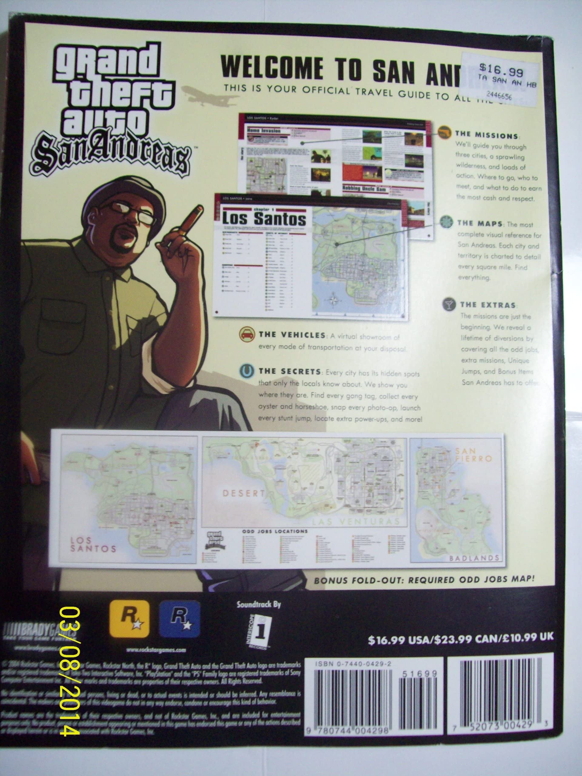 Let BradyGames Be Your Partner in Crime in San Andreas! BradyGames' Grand Theft Auto: San Andreas Official Strategy Guide features a step-by-step walkthrough. Mission strategies to achieve every objective and detailed maps. Coverage of new character abilities, plus a showroom of all vehicles. Game secrets and hidden packages! Signature Series guide includes bonus content, a premium foldout, and much more! BradyGames is Official and Exclusive on this title. Platform: PlayStation 2 Grand Theft Auto: San Andreas is the latest game in the world-renowned Grand Theft Auto franchise. The game features several new elements and revolves around three cities--Los Santos (based on Los Angeles), San Fierro (based on San Francisco), and Las Venturas (based on Las Vegas). Each city is relatively the size of Vice City--making it clear what the magnitude of the game is. Some of the new elements in this game include four-person drivebys, house break-ins and robberies, character abilities such as eating and swimming and more. The visual effects have also been improved with things like real-time reflections, fully rendered interior environments, and new camera controls. The storyline, set in the early 90s, centers on Carl Johnson, a man who escaped from the pressures of life in Los Santos, San Andreas, five years ago. Now Carl's got to go home, and on his return to the neighborhood, he is framed for homicide. Not Final Cover. Take Two Interactive Software, Inc., headquartered in New York City, is an integrated global developer, marketer, distributor, and publisher of interactive entertainment software games and accessories for the PC, PlayStation®, PlayStation®2, Xbox¿, Nintendo Game Boy Color, Nintendo GameCube and Nintendo Game Boy Advance. The Company publishes and develops products through various wholly owned subsidiaries including: Rockstar Games, Rockstar North, Gotham Games, Gathering of Developers, TalonSoft, Joytech, PopTop, and Global Star. The Company maintains sales and marketing offices in Cincinnati, New York, Toronto, London, Paris, Munich, Vienna, Copenhagen, Milan, Sydney and Auckland. Take-Two's common stock is publicly traded on NASDAQ under the symbol TTWO. For more corporate and product information please visit our website at www.take2games.com.