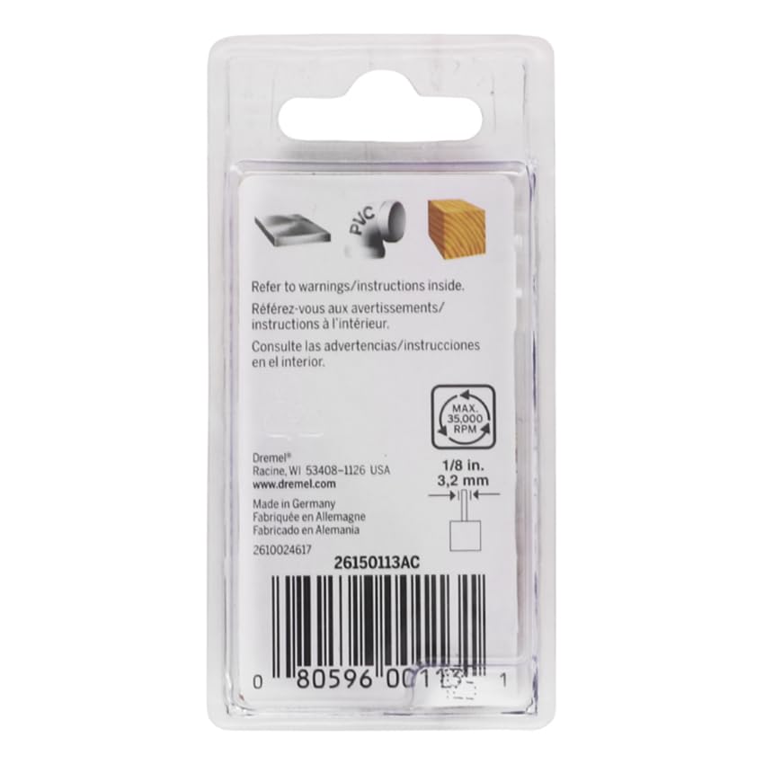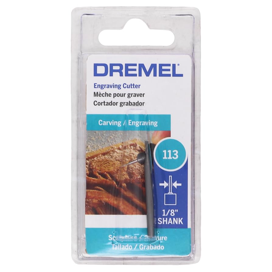 Product Description The versatile 1/16 In. (1.6 mm) diameter Engraving bit is made of high-grade steel for use on wood, plastic, leather, soft metals & rubber. For use with all Dremel high-speed rotary tools, the accessories work well for detailed material removal in applications like shaping, carving, engraving, hollowing, grooving, slotting, inlaying, making tapered holes, or freehand routing. The cylinder shape of the Engraving bit allows for deep removal of material, cuts flat areas, round edges and makes stop cuts and V-cuts. The accessory tip makes flat bottom slots and grooves, flat side cuts, and makes V-cuts when held at 45-degrees. From the Manufacturer A high-speed cutter designed for precision engraving, 3/32" (2,4mm) shank. Ideal for detail engraving, carving and routing in wood, fiberglass, ceramics, plastic, jewelry and soft metals.