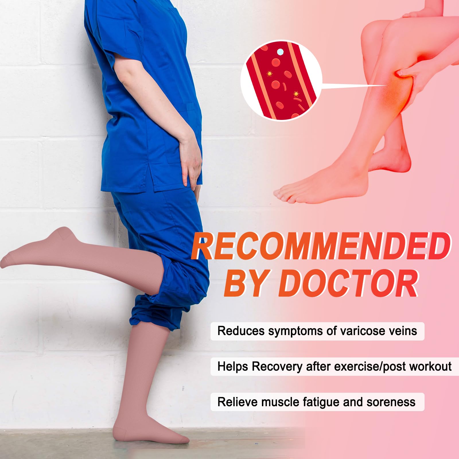 Compression for Optimal Support β These socks are engineered to provide compression that helps to reduce swelling, improve circulation, and relieve varicose veins. Made from nylon, they combine strength and flexibility, providing consistent compression throughout the day. Whether youβre recovering from a workout or standing for hours, these socks will provide immediate relief and comfort, making them perfect for both high-impact sports and long work shifts.