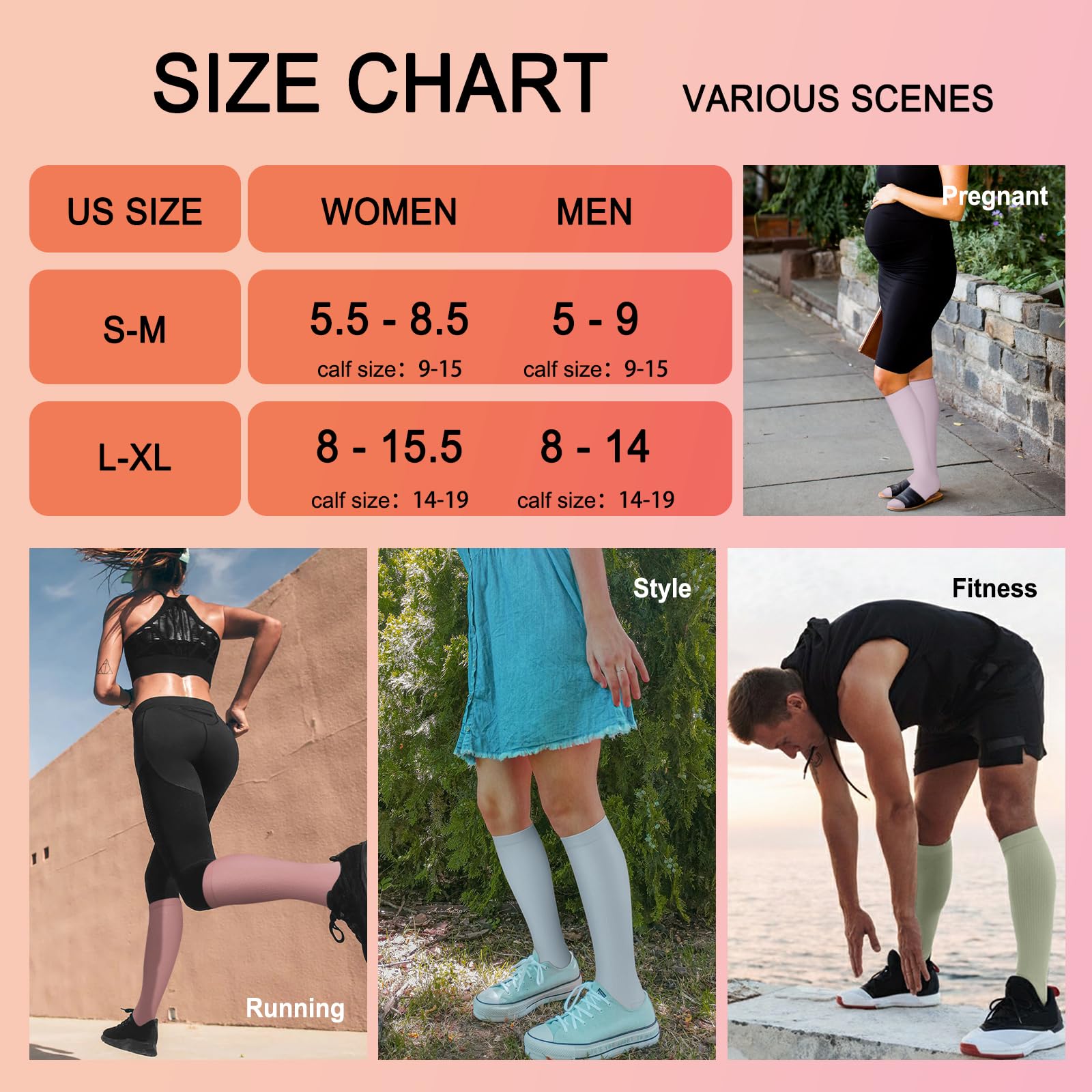 Perfect for Every Occasion β From running, sports, and pregnancy to work and travel, these compression socks are versatile enough to meet your needs. They help to reduce swelling, improve circulation, and support blood flow. Whether you're on a flight, in the gym, or working a long shift, you'll experience the difference in comfort and performance with these socks.