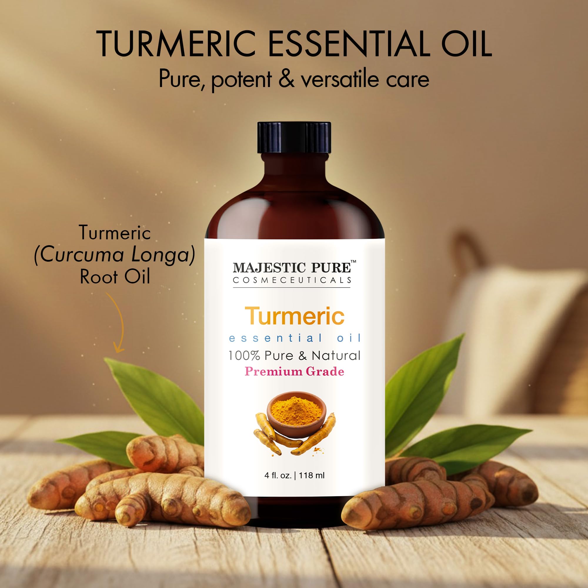 Premium turmeric essential oil organic, extracted from Curcuma longa roots, part of our high-quality organic essential oils collection. Widely used as turmeric oil for skin and turmeric face oil to help improve natural glow, making it a must-have in your essential oils for skin routine.