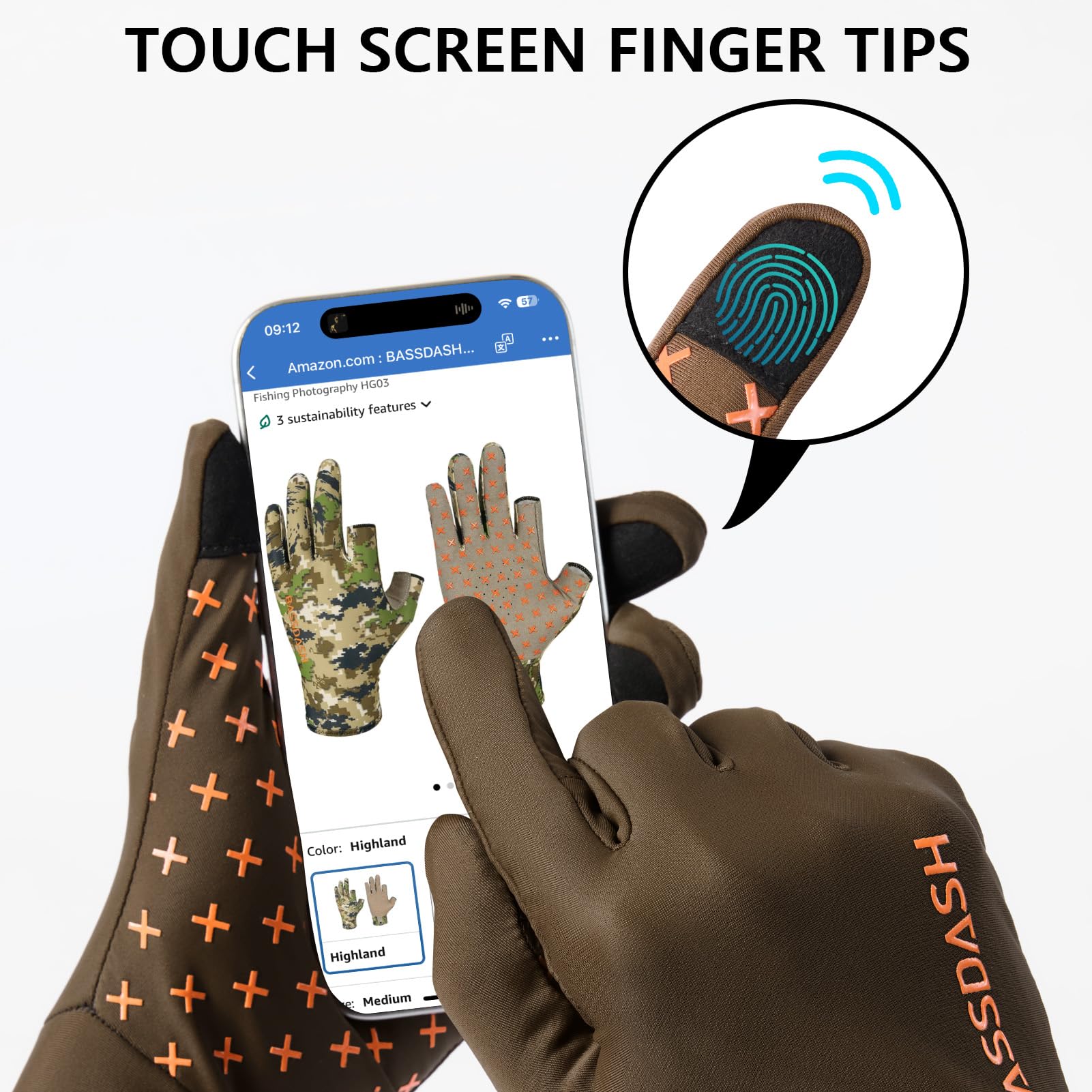 Description BASSDASH Men’s Camo Hunting Gloves UPF 50+ Lightweight Touchscreen Gloves for Warm Weather Fishing Hiking Outdoor Activities HG01M