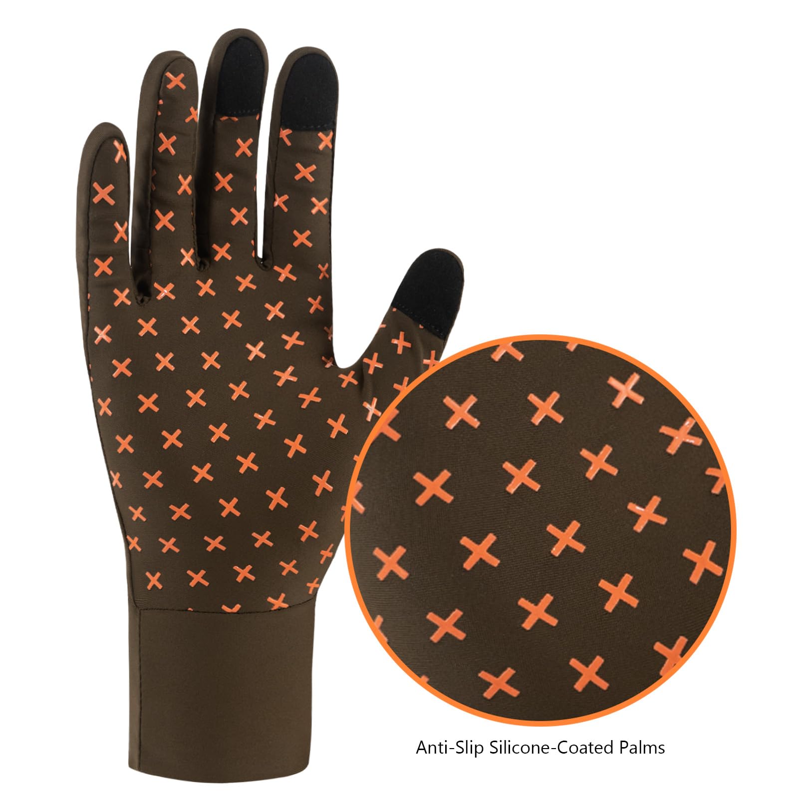 Silicone cross printing along the palm and fingers for added grip to make sure that you keep a firm grip on your bow or other hunting tools; Extended cuff for comfort and can easily tuck under your long sleeves