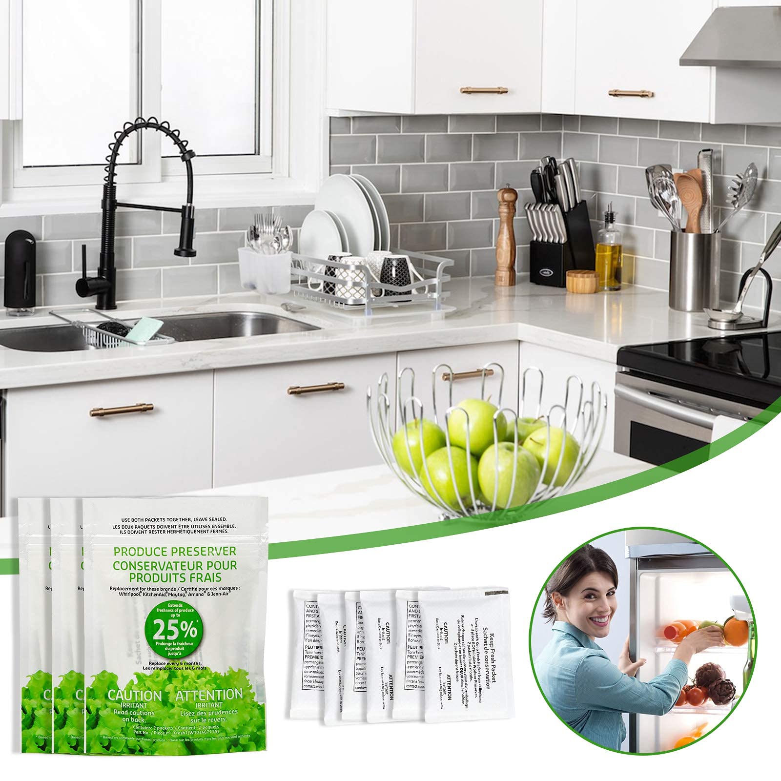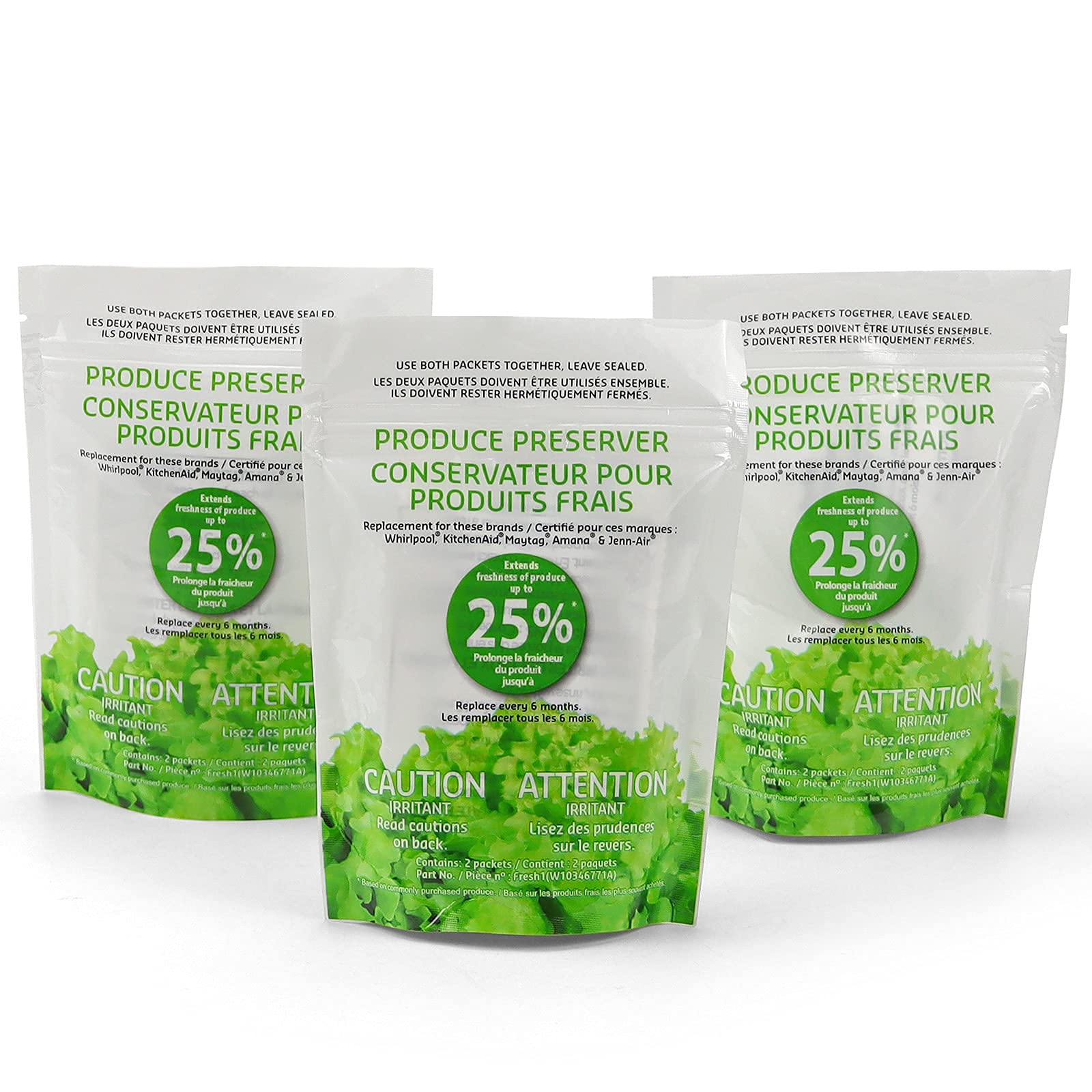 [Cost-effective] Our Fresh Flow produce preservers are completely designed with non-polluting, safe and hygienic natural materials. Extend the life of your fruits and vegetables with instructions for proper use on the package. Easy to install, saving time and money, Great value for money. Guaranteed to exceed OEM specifications. Please note: Indicator strips not included, replace every 6 months