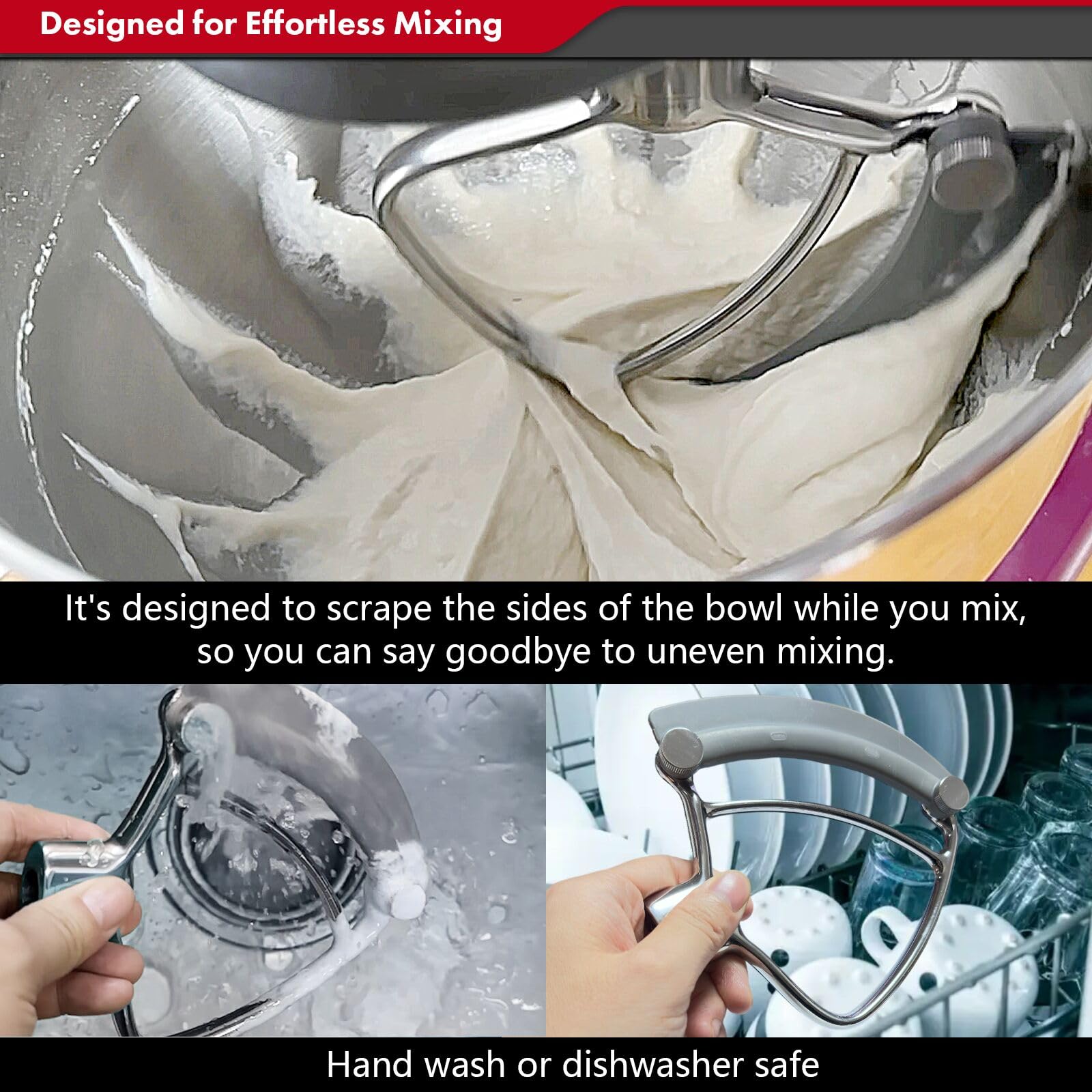 Mix it all - perfect for thin cookie dough, compound butters, pie pastry, creamed frostings, mashed potatoes, and more! (Not for hard dough. Do not use in a dry bowl.)