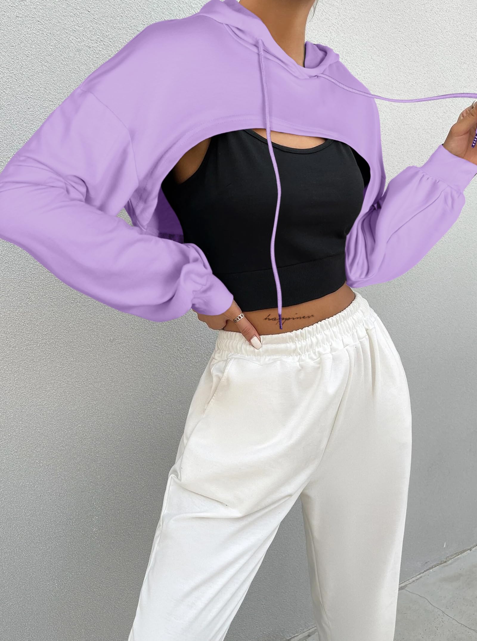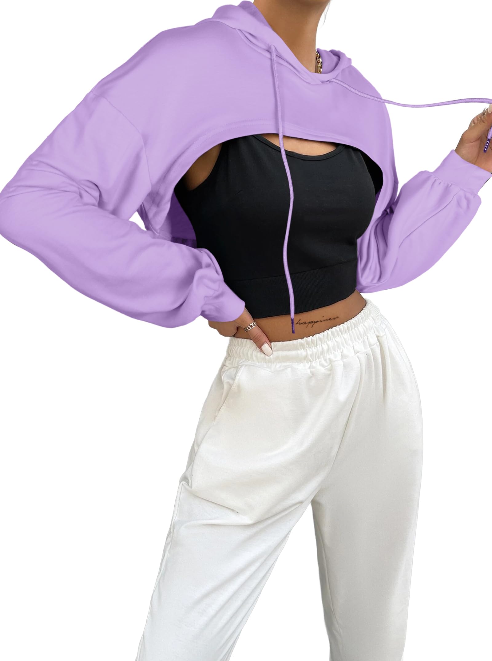 FEATURES: Crop hoodies for women, long sleeves, cropped length, drop shoulder, loose fit, drawstring hooded, workout crop tops for women