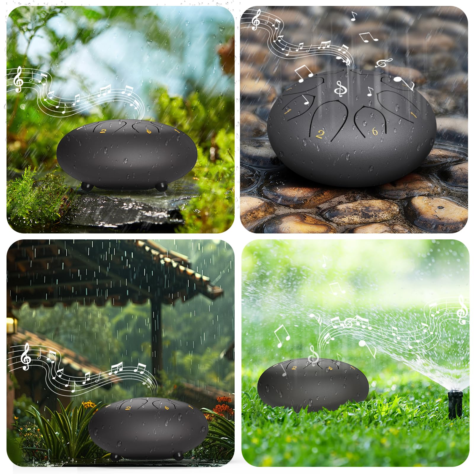 RAIN DRUM FOR OUTSIDE: The rain drum is crafted to capture the serene sounds of rain. As raindrops hit its surface, the drum resonates, offering a soothing auditory experience. Transform your garden into a tranquil concert venue, providing a peaceful ambiance. Ideal for relaxation, meditation, and music healing.