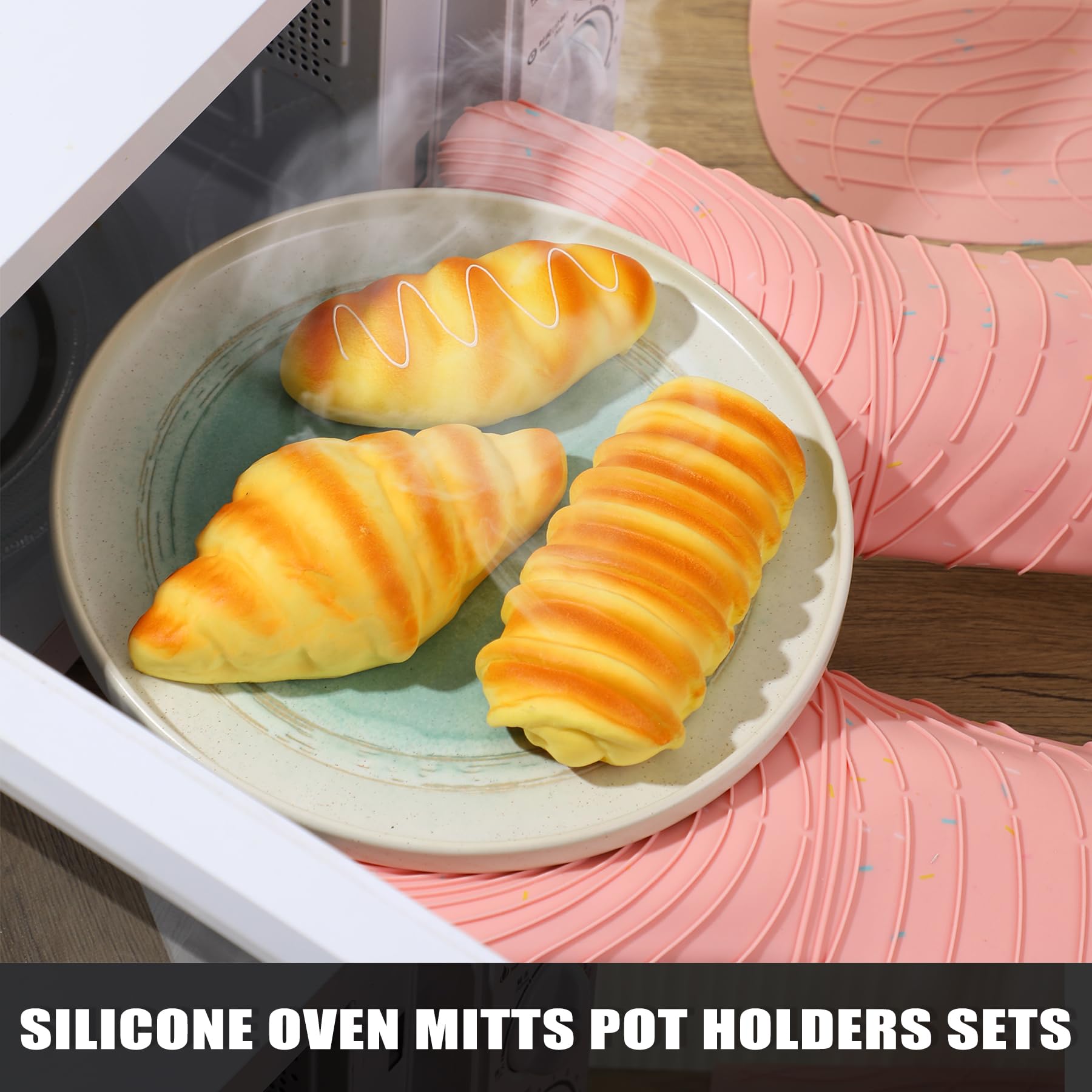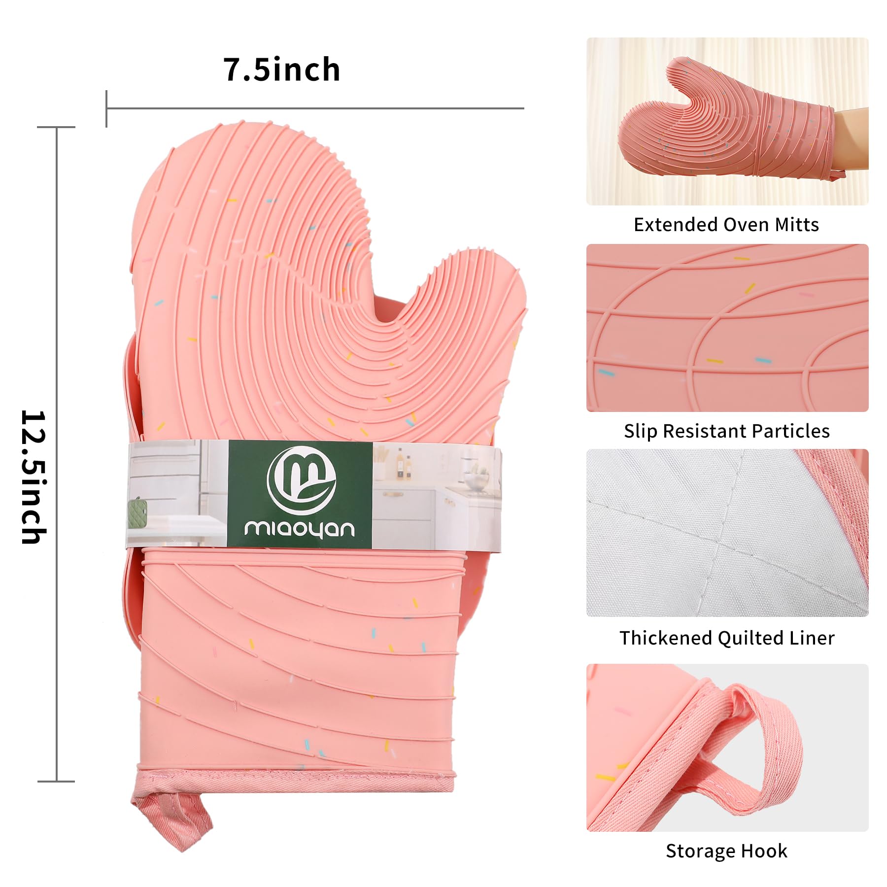 Versatile Four-Piece Set of Silicone Oven Gloves and Mats: Each set includes two 12.5-inch silicone oven gloves and two 7.8-inch silicone mats, showcasing M Miaoyan's dedication to innovative kitchen product designs.