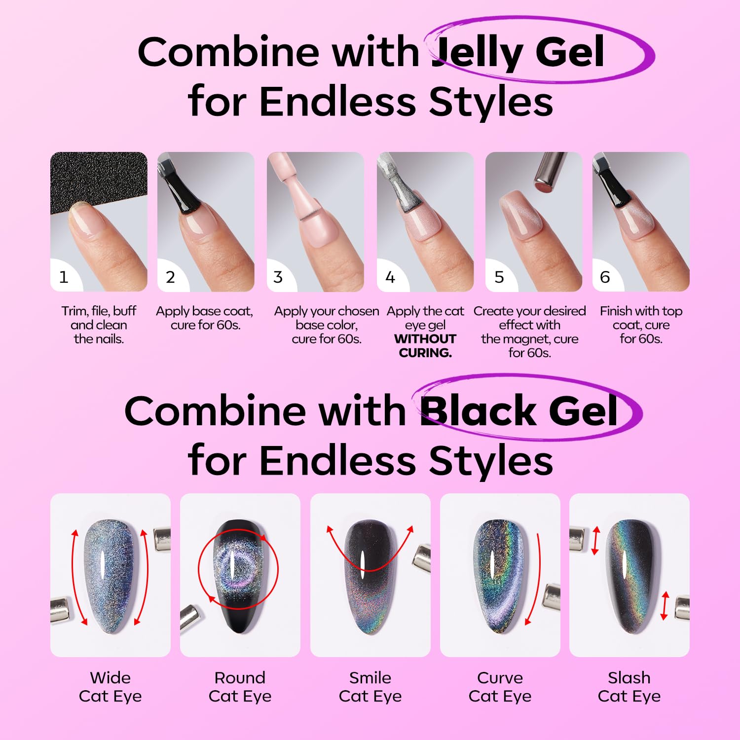 Care for You : This 9D Cat Eye Nail Gel Polish may cause an allergic reaction upon skin contact in rare cases. Please do a patch test before using to check for any reaction. Note that this item is a UV LED gel and remains sticky after curing. It must be used with a base coat and top coat (not included, need to be purchased separately)