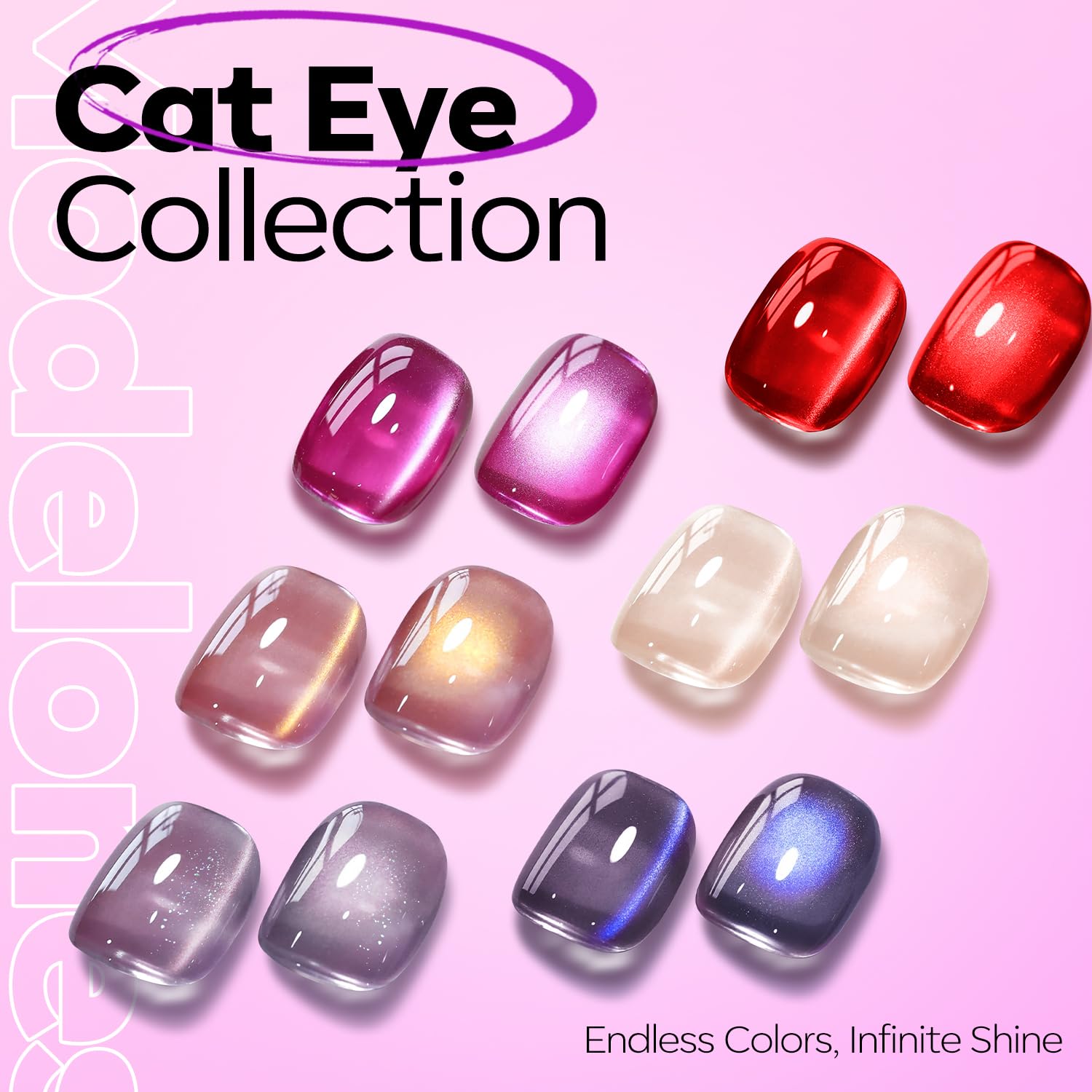 Tips: Hold the magnetic stick 3-5mm above the surface for 5-10 seconds to achieve your desired effect! [ What You Get]: Black Colors of Semi-transparent Holographic Glitter Cat Eye Gel Nail Polish (15 ml/ 0.5 fl. oz each) + 1 Double-Head Magnetic Stick for various cat eye designs. Each shade of Modelones 9D cat eye gel polish is expertly mixed with metallic magnetic glitter powders for a stunning, shiny finish. Different angles create different visual effects. Practice makes perfect!