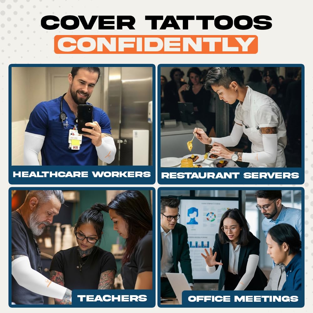 VERSATILE: Our arm sleeves for men or women offer complete protection for a range of uses, including; tattoo cover up sleeves, arm compression sleeves, running arm sleeves, football sleeves, arm warmers for women or men and even as a shooting sleeve or basketball arm sleeve