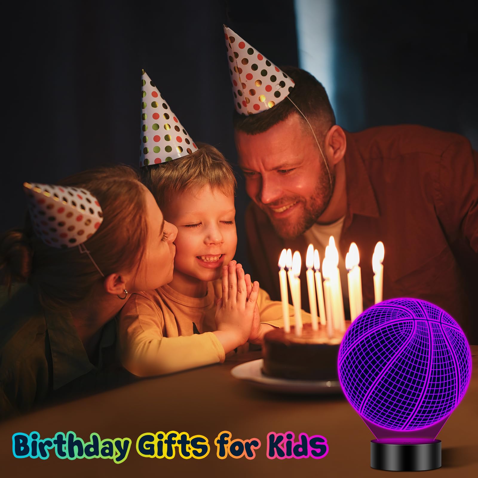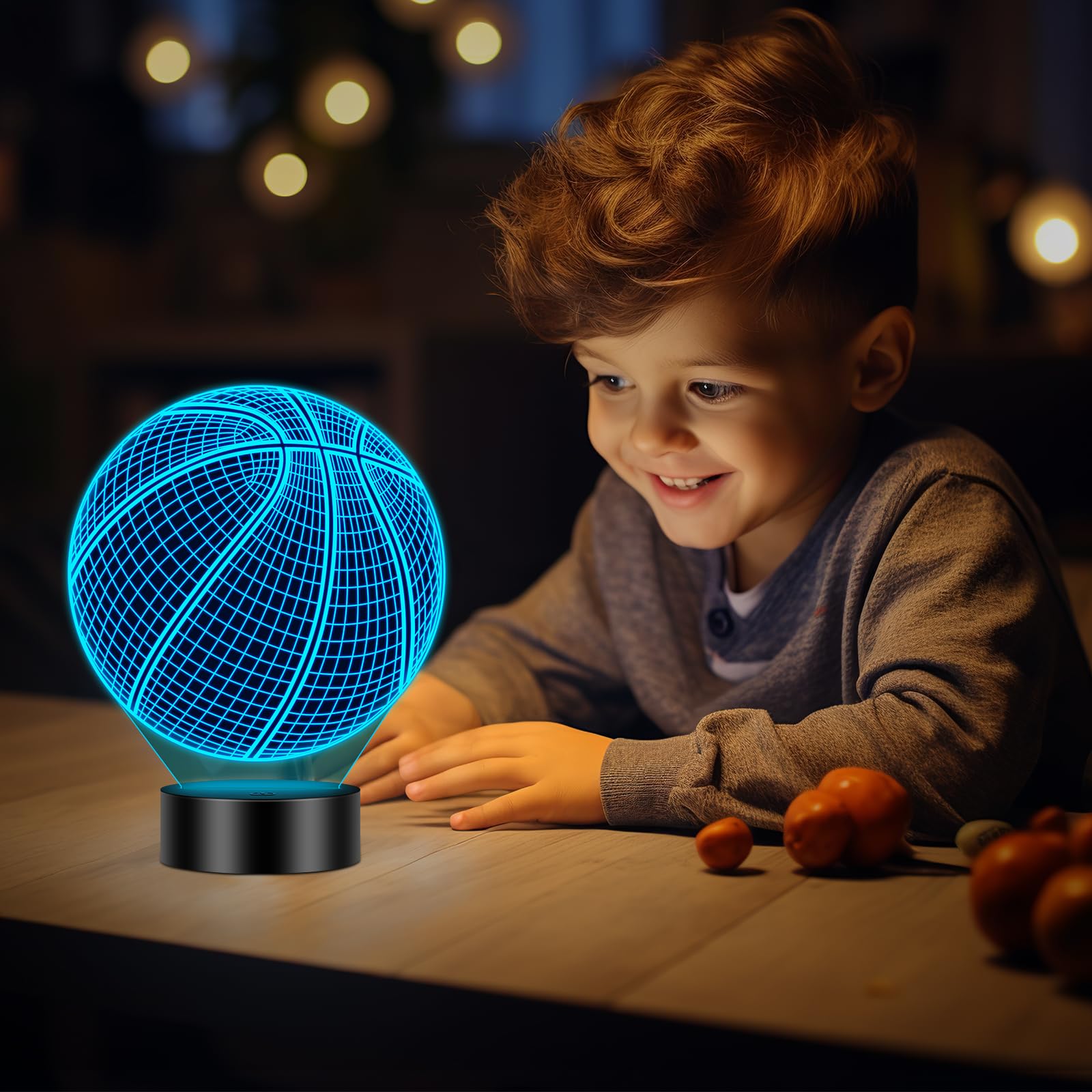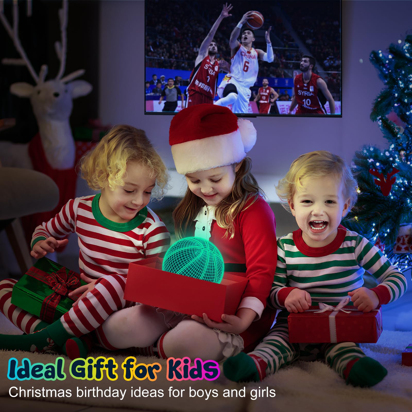 Basketball 3D Visual Effects Christmas Gifts for Kids: The basketball night light using optical acrylic silicone plate, the illusion effect makes the room unique and warm when lit. The basketball light is the perfect companion for sleep. In the dark night, as long as there is a moderate amount of light, your child will feel very comfortable, Provide a good night and sleep for your child. (Note: 3D is only visual, the light itself is flat).It is also a unique christmas gifts for 6 7 8 9 10 11 12 13 year old boys girls kids teens youth.