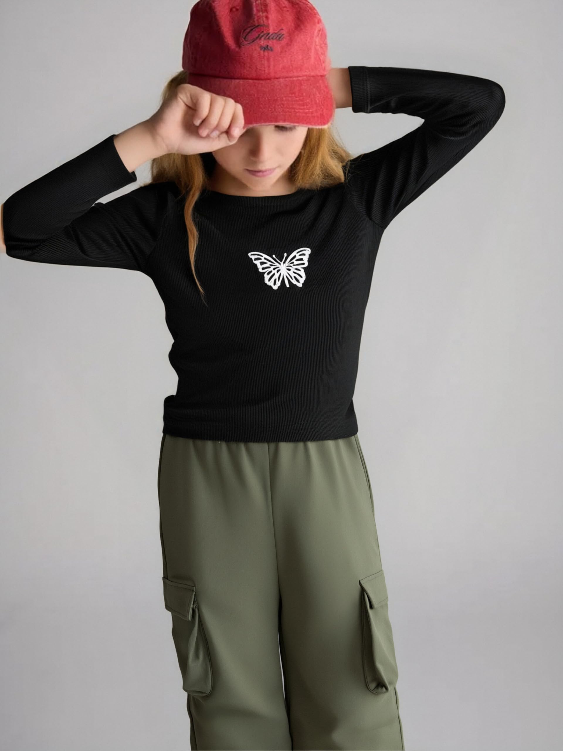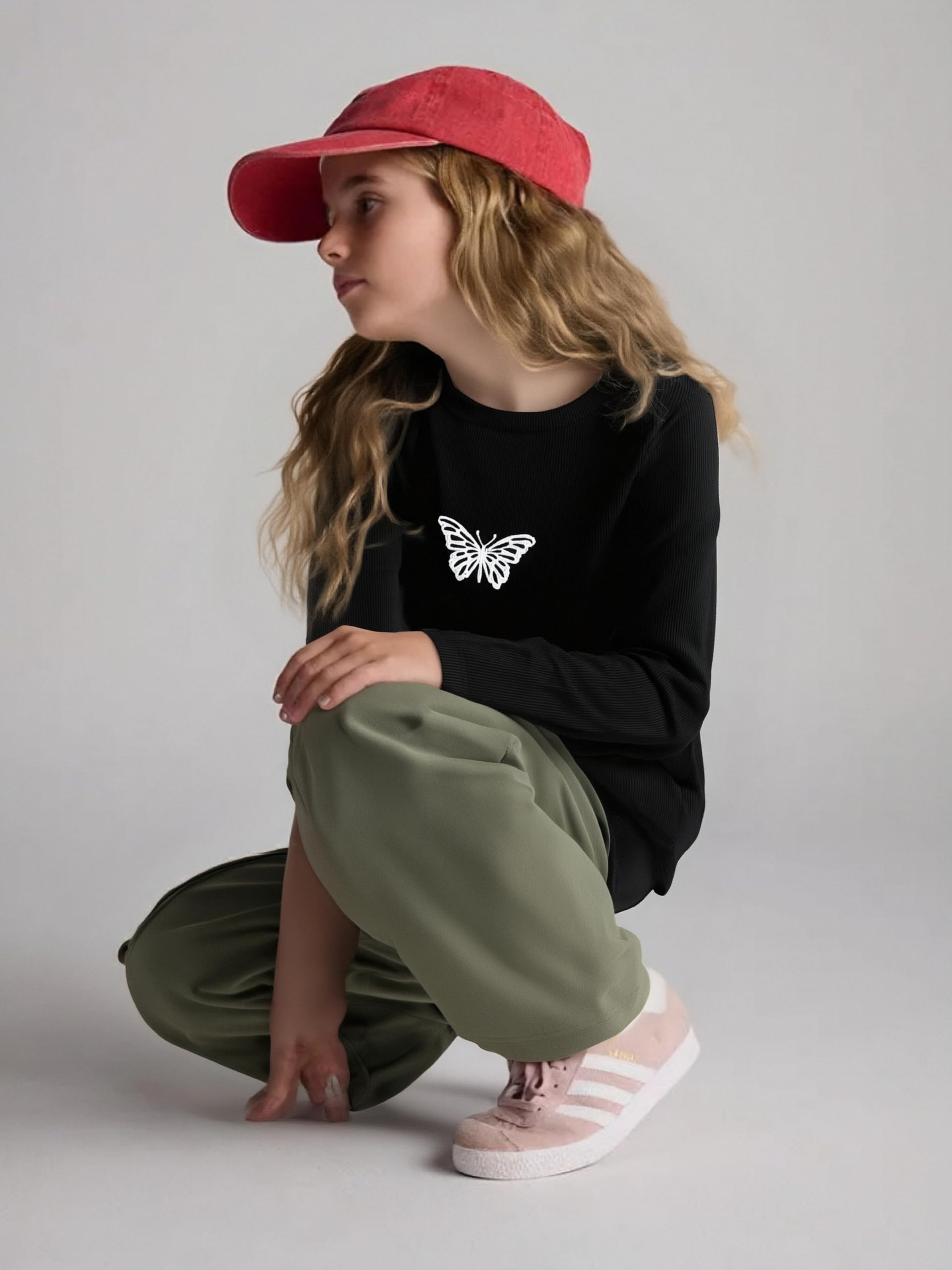 👖 Trendy Yet Practical – The ruched long sleeve tee pairs perfectly with the high-waisted cargo joggers, creating a cute outfit for girls who love both fashion and function.