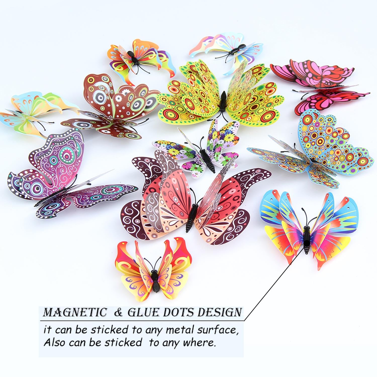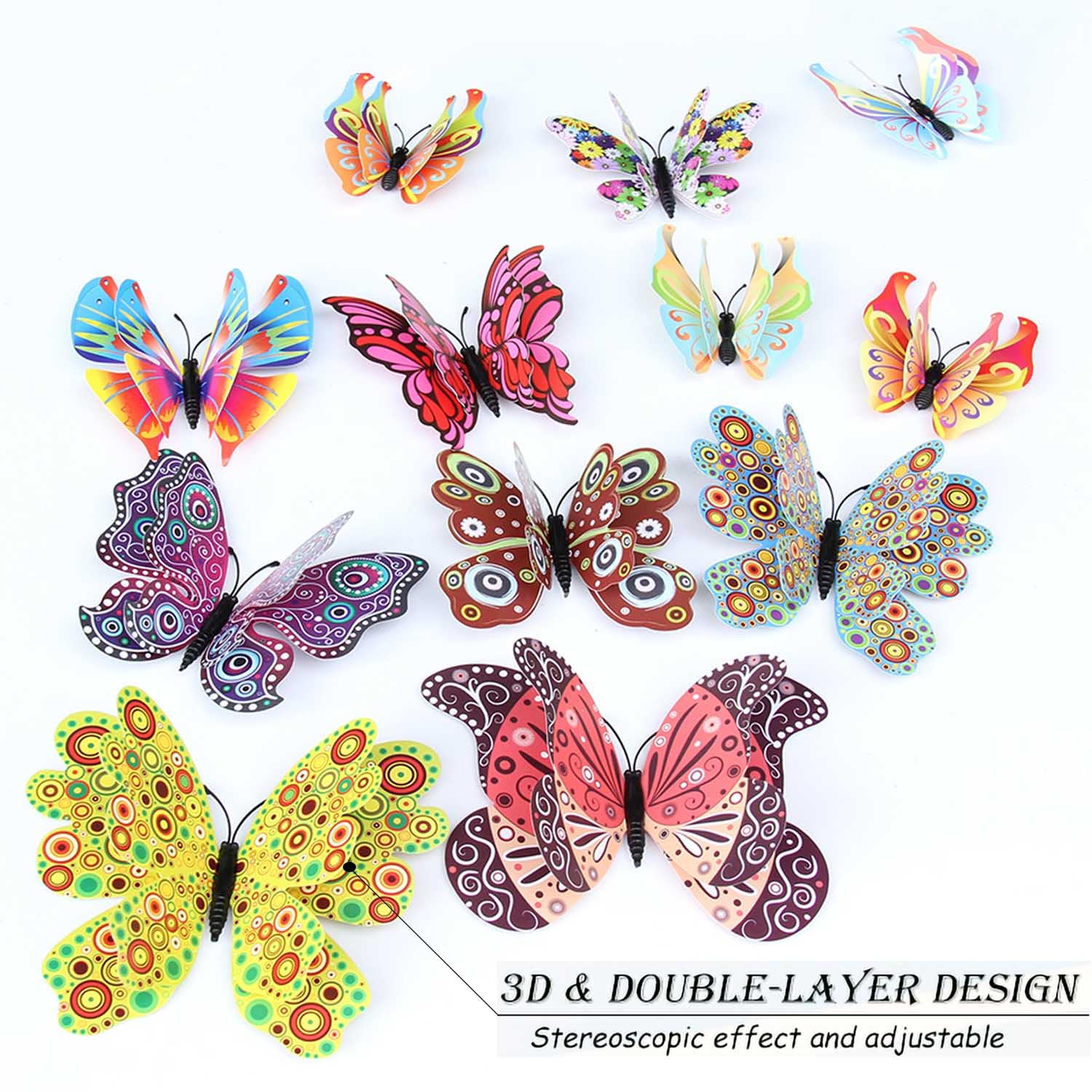 12 Different Styles:Total 24pcs butterfly stickers are in 4 sizes(2.4 inches-8 pcs, 3.15 inches-8 pcs, 3.9 inches-4 pcs, 4.7 inches-4 pcs). and 12 different styles (as picture showed), rich and charming, It will Make your home more wonderful and comfortable