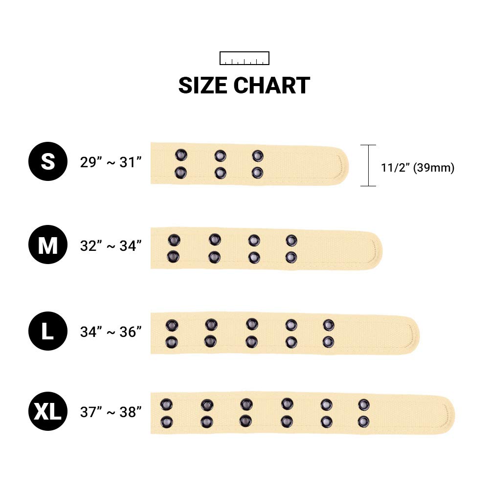 ● SIZES: The Canvas Double Grommet Belt is available in 4 sizes to fit every body type. S: 29"-31" waist; M: 32"-34" waist; L: 34"-36" waist; XL: 37"-38" waist. Wide: 1.5"