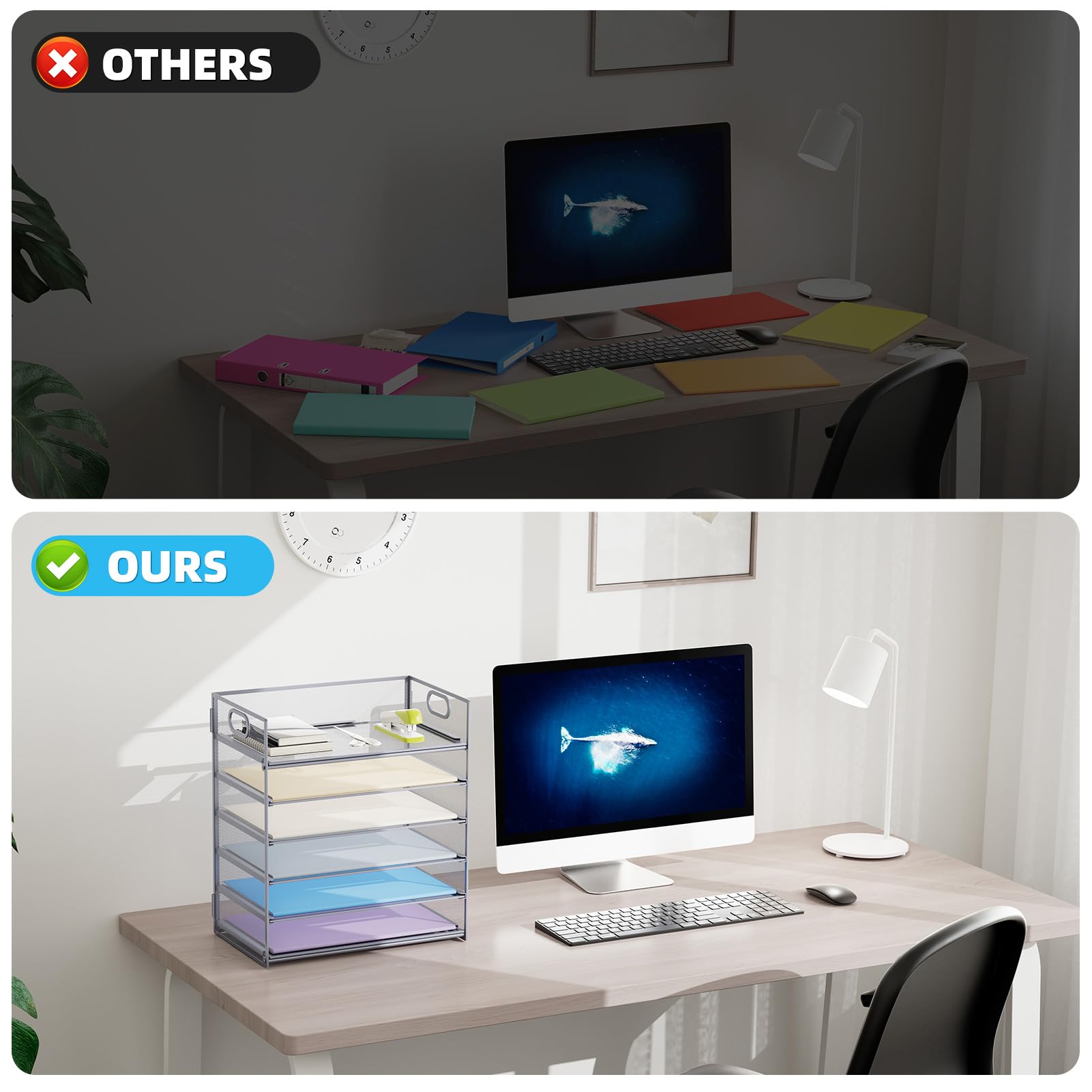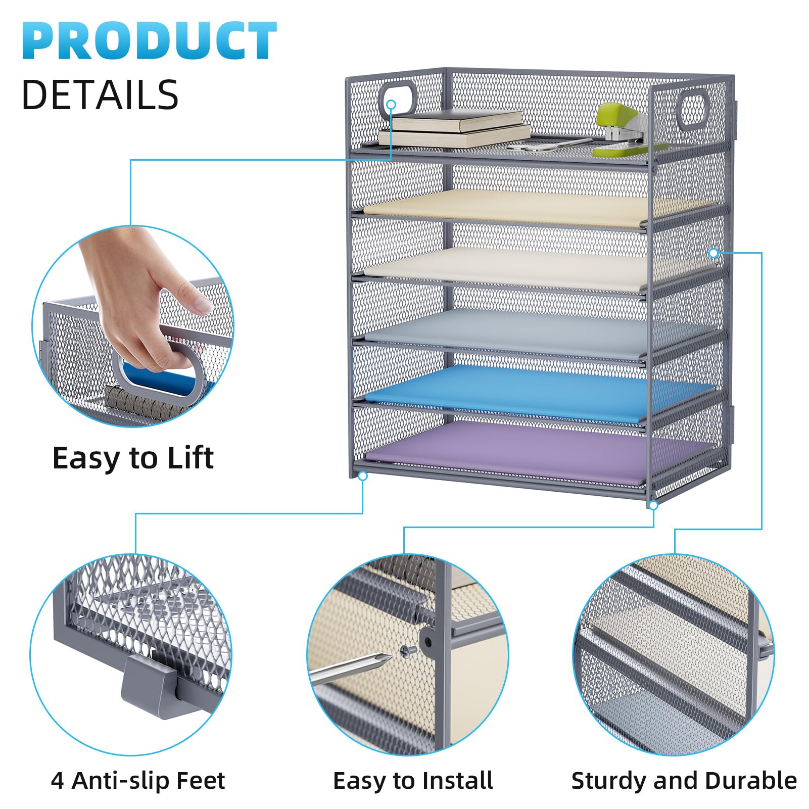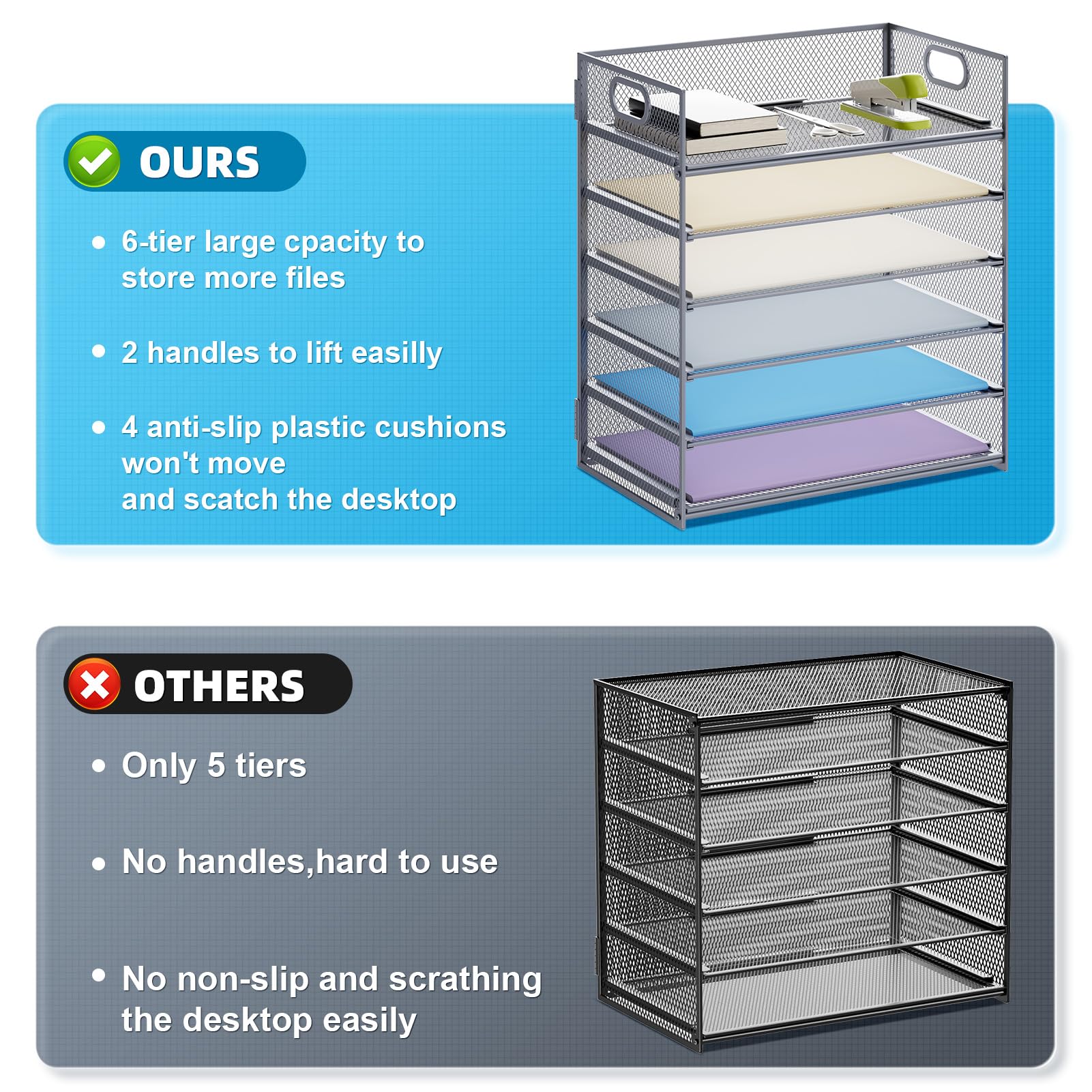【MULTI-PURPOSE ORGANIZER】6-tier layered design and large capacity make the paper organizer become an ideal choice for managing all kinds of letter-size letters, paper, books, bills, etc. Let you quickly identify the contents of each compartment super easy