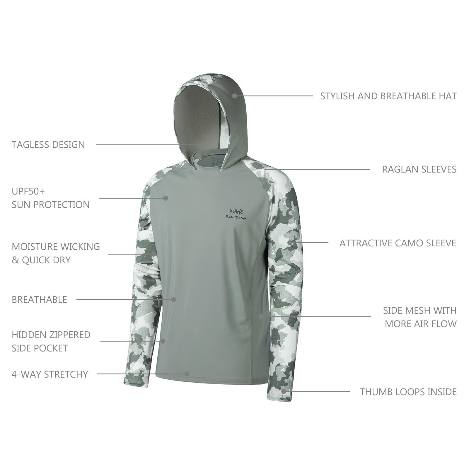 Innovative camo design on sleeves & hat - Attractive yet inconspicuous camouflage pattern with natural blended colors stands out from other shirts