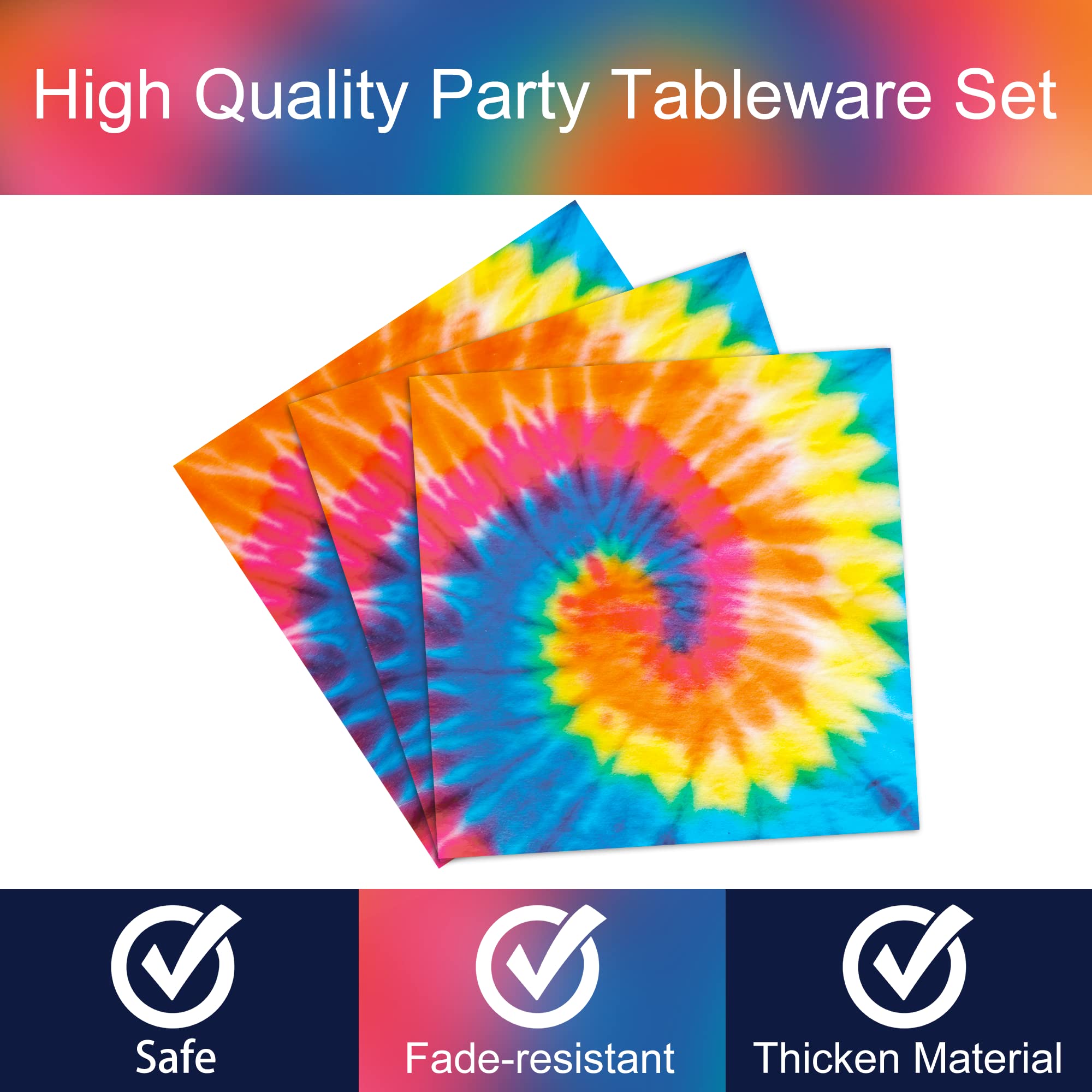 Premium material: All of our Tie Dye theme plates and napkins are made of quality paper, no smell, heat-resistant and durable. The pattern and color are well-printed and fade-resistant to provide you with a party full of Tie Dye theme atmosphere.