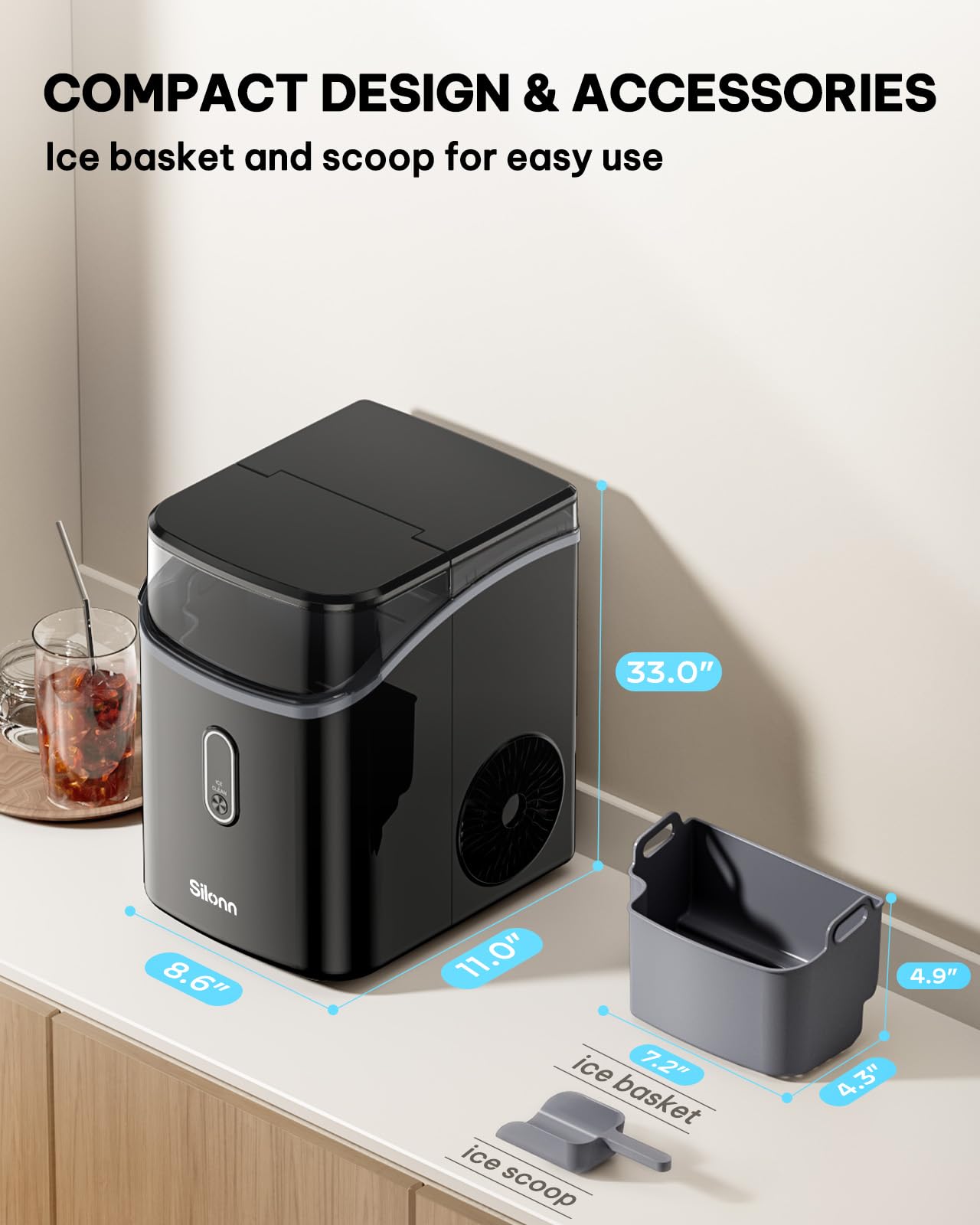 Soft Chewable Nugget Ice: Crafted by Silonn nugget ice makers, Chewable nugget ice offers a softer texture and greater surface area, enabling faster cooling of beverages. Enjoy a fully refreshing drinking experience. Ideal for preparing iced tea, coffee, cocktails, or for chilling beer and preserving food freshness.