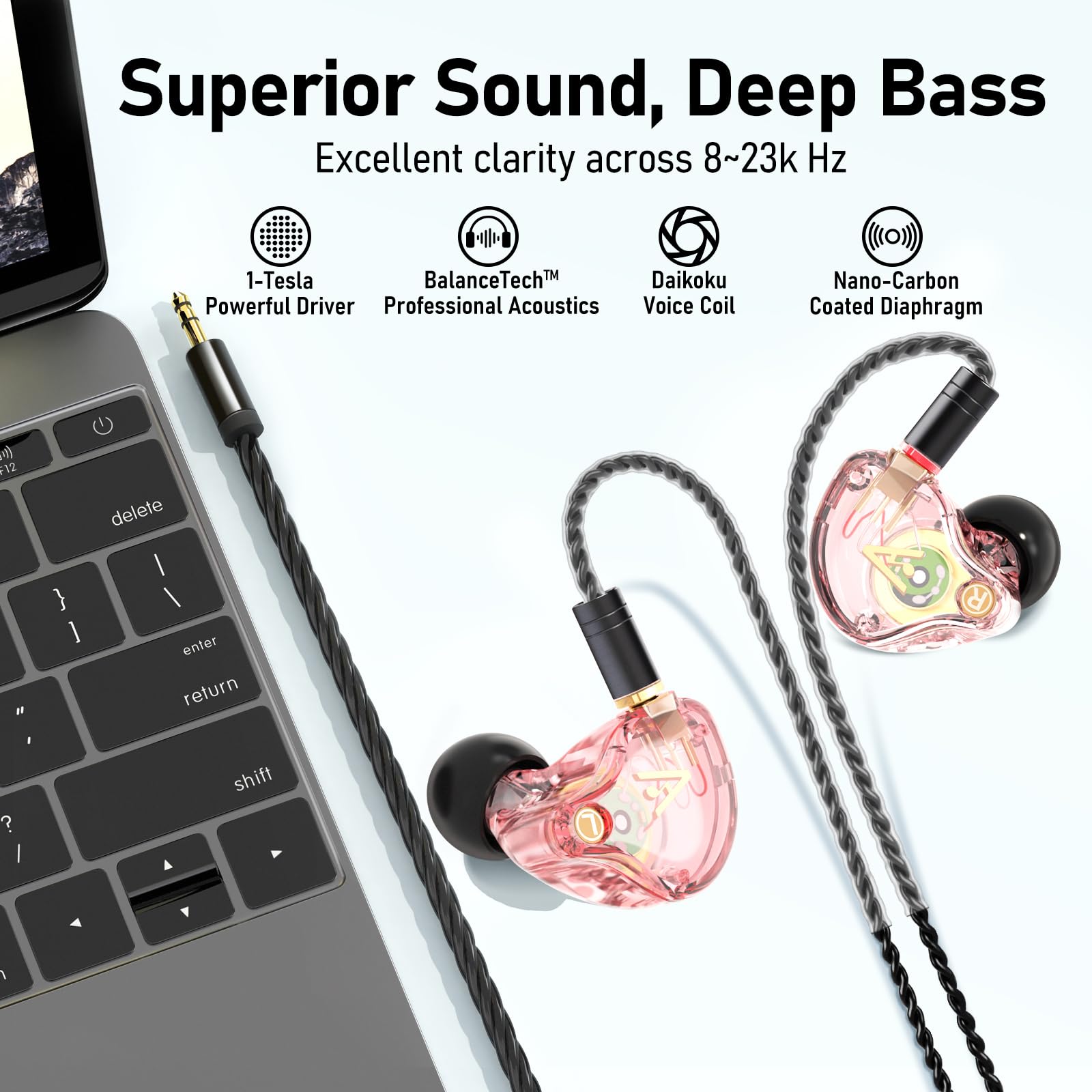 EXCEPTIONAL HIFI SOUND - Equipped with a 1-Tesla powerful driver and master-tuned professional acoustic chambers, the Vibes 202 HiFi in-ear monitor earphones deliver precise and detailed sound across a full frequency range from 8 to 23k Hz. The high-purity, silver-plated, Litz-braided audio cable ensures stable and lossless sound transmission for pure, unaltered audio.