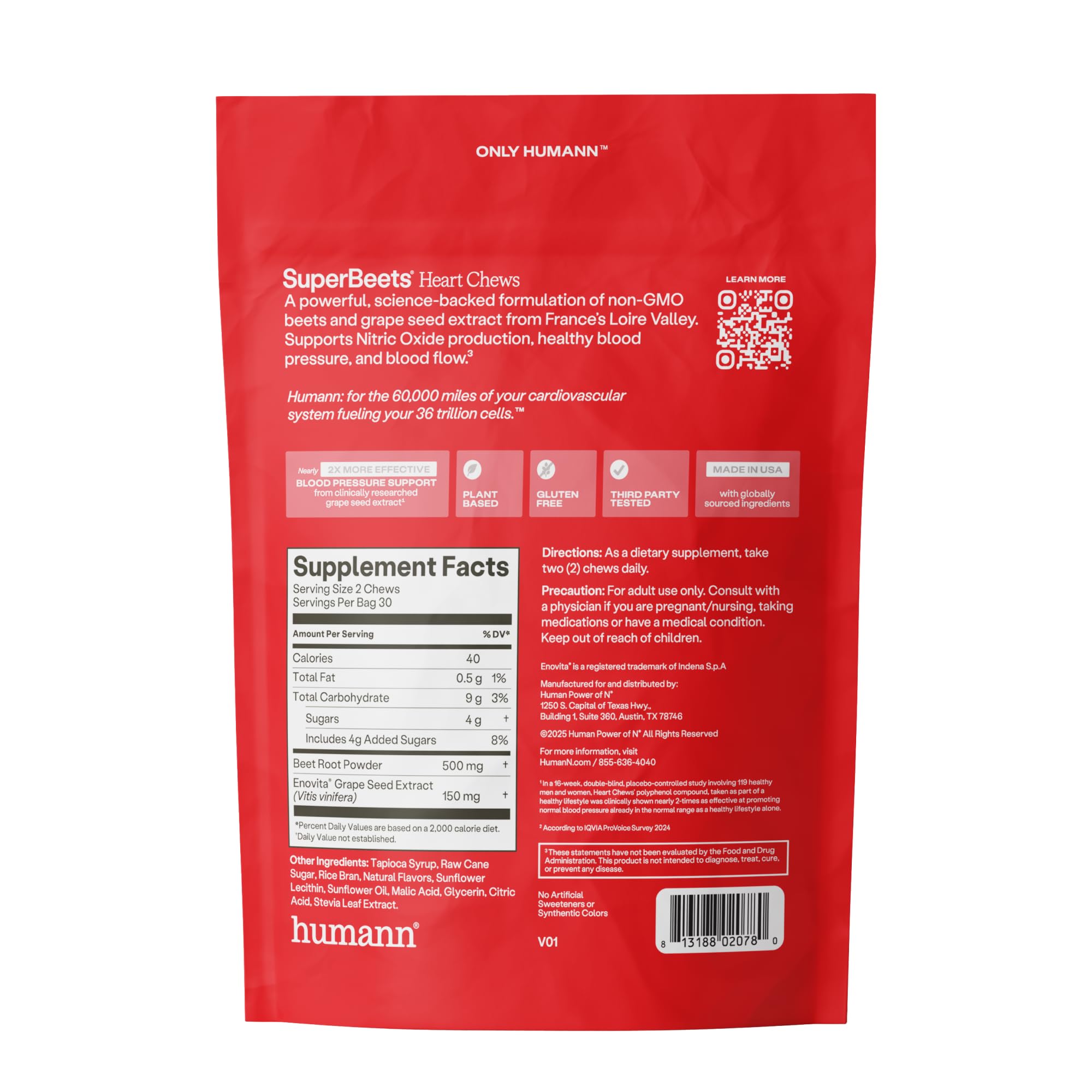 SUPPORT BLOOD PRESSURE & ENERGY: SuperBeets Heart Chews are powered by clinically studied Grape Seed Extract to support healthy blood pressure. These Nitric Oxide supporting supplements for men and women may help support healthy circulation.