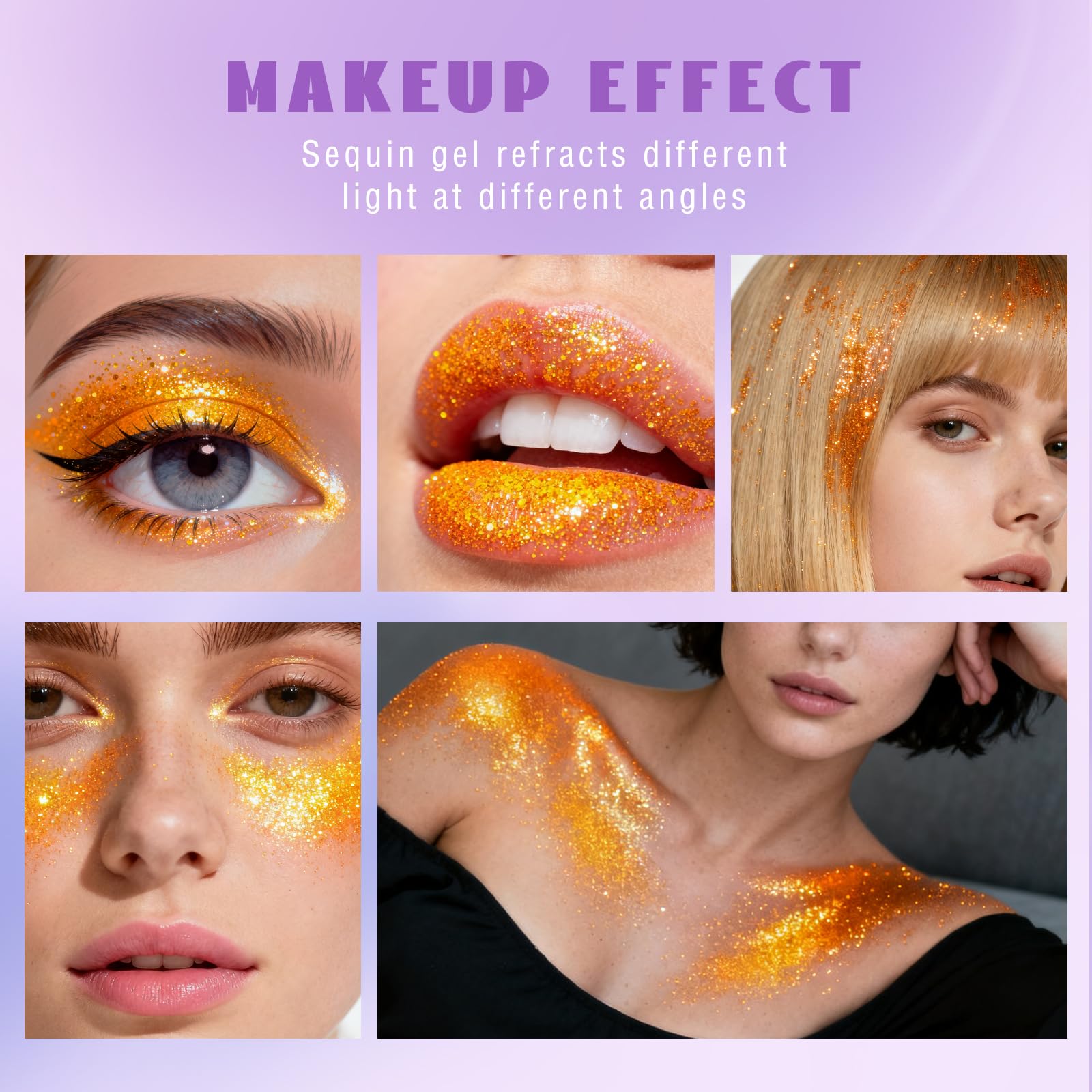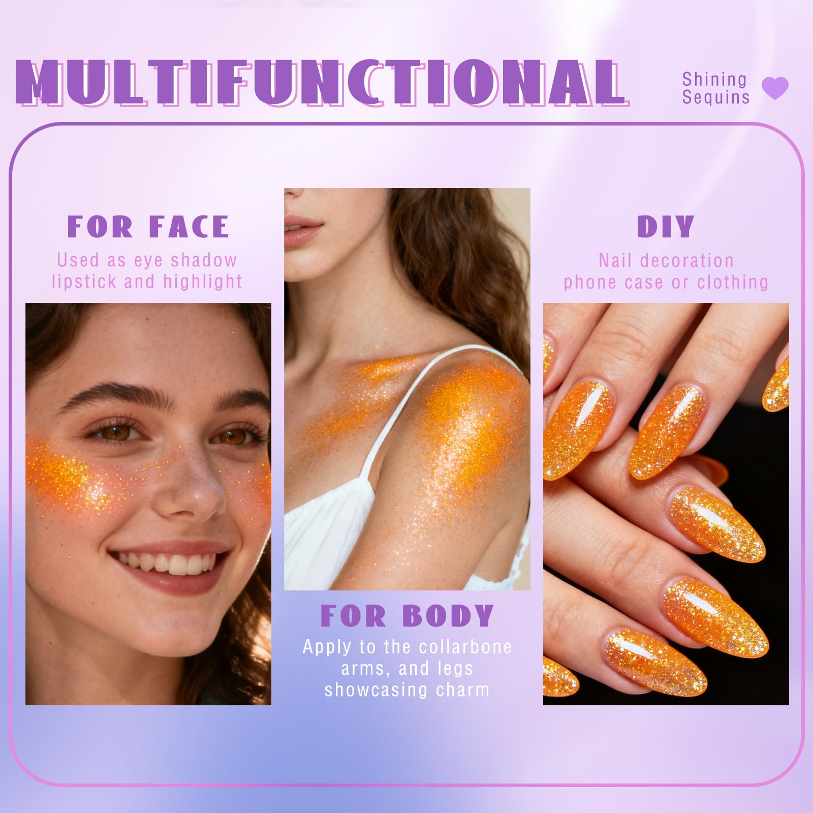 Wide Applications: This cosmetic chunky glitter gel is perfect for your body, face, eyeshadow, lips, cheeks, hair, nail art, and more, and perfect for rave hair accessories. It has a strong glowing effect in day and night, especially suitable for parties, weddings, stages and music festival, making you the glamorous focus of a passionate revelry