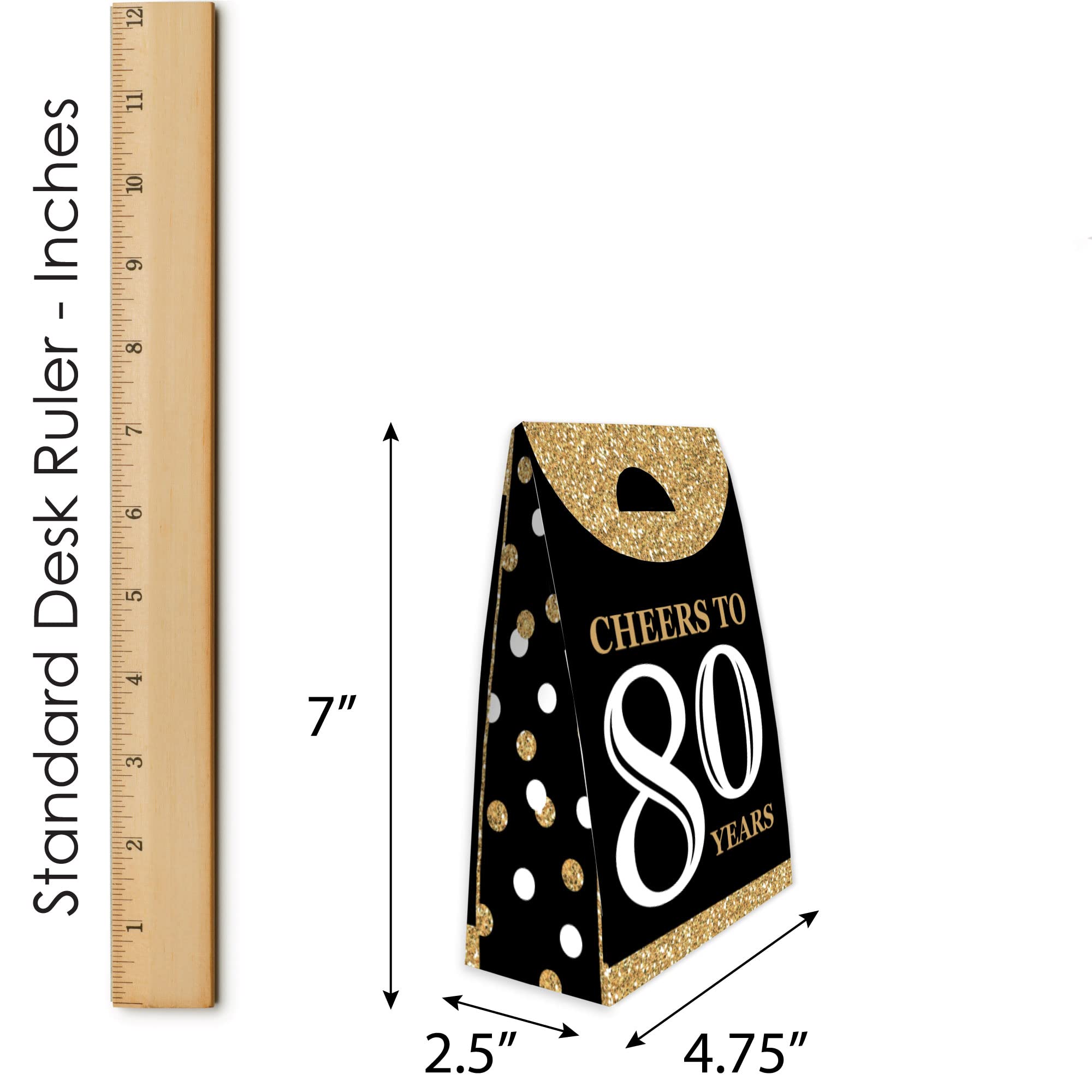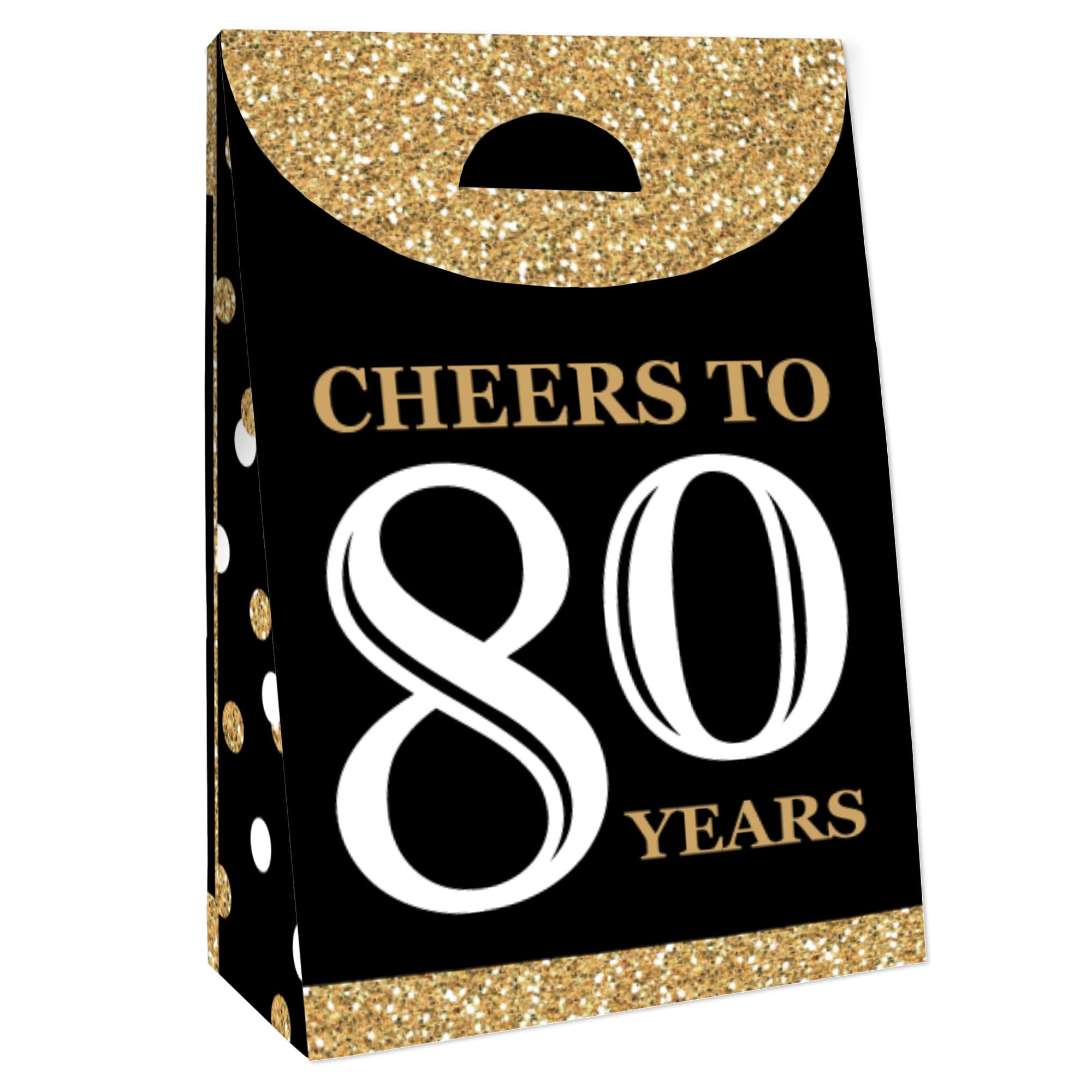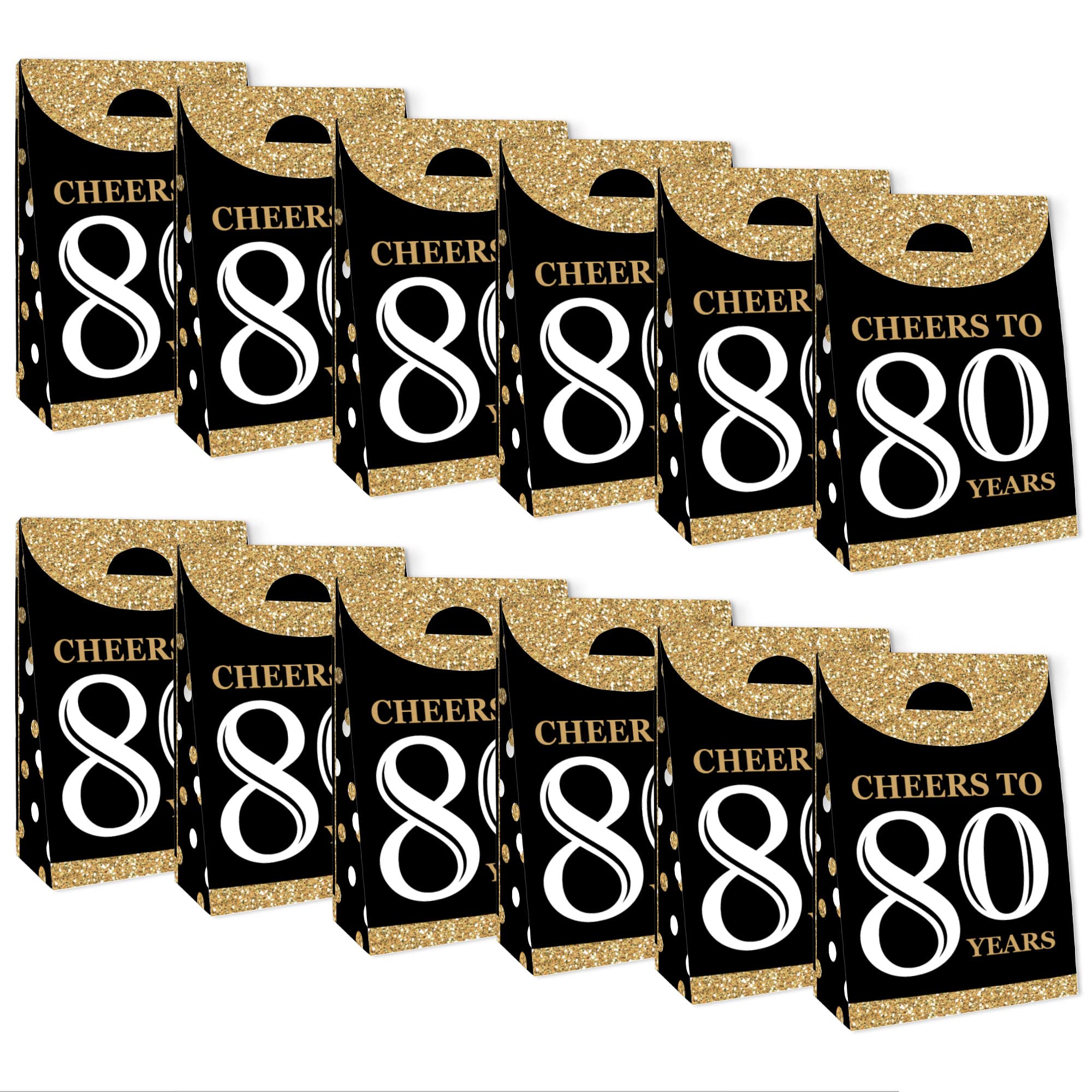 Adult 80th Birthday - Gold Party Goodie Bag INCLUDES 12 gift favor bags that are perfect for a birthday party. Each bag SIZE measures 4.75” length x 2.5” wide x 7” tall. Party Goodie Bags are excellent for small gifts, treats, and other party favors.