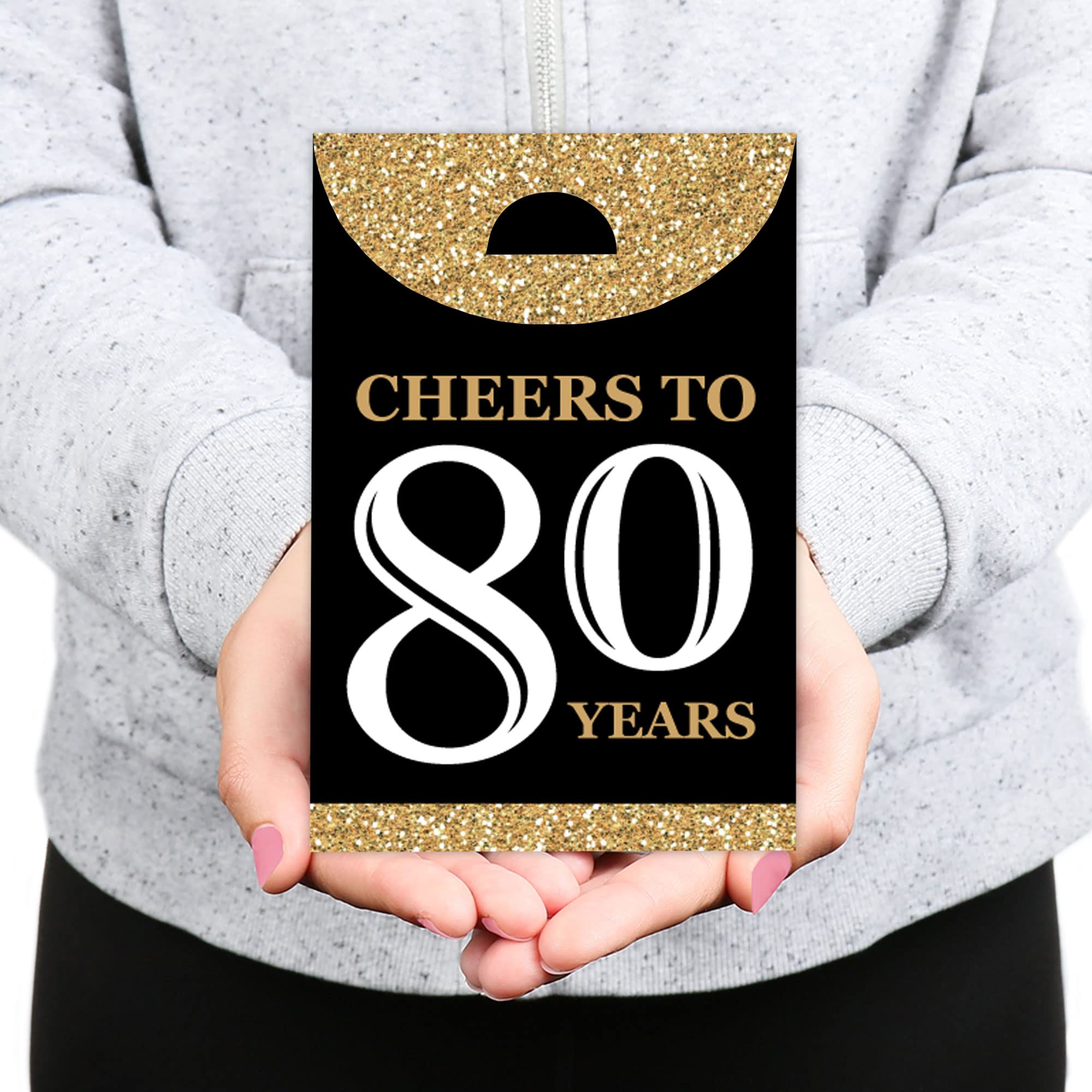 HIGH-QUALITY SUPPLY: Adult 80th Birthday - Gold Party Goodie Bags are professionally printed double-sided on heavy-duty cardstock paper with a photo-like shine. They are individually inspected and then carefully packaged by hand.