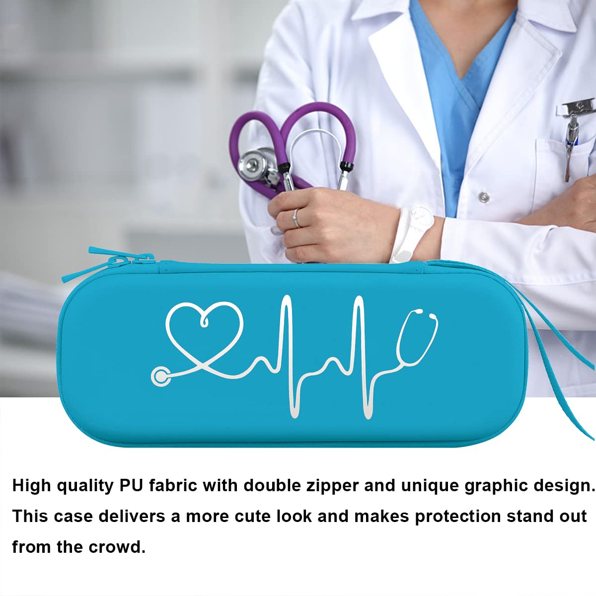 This stethoscope holder is Semi Waterproof, shockproof, Stylish and Durable. Guaranteed to prevent any damage to your Stethoscopes. Double zipper design provides easy access to insert and remove your stethoscope and nurse accessories for work.
