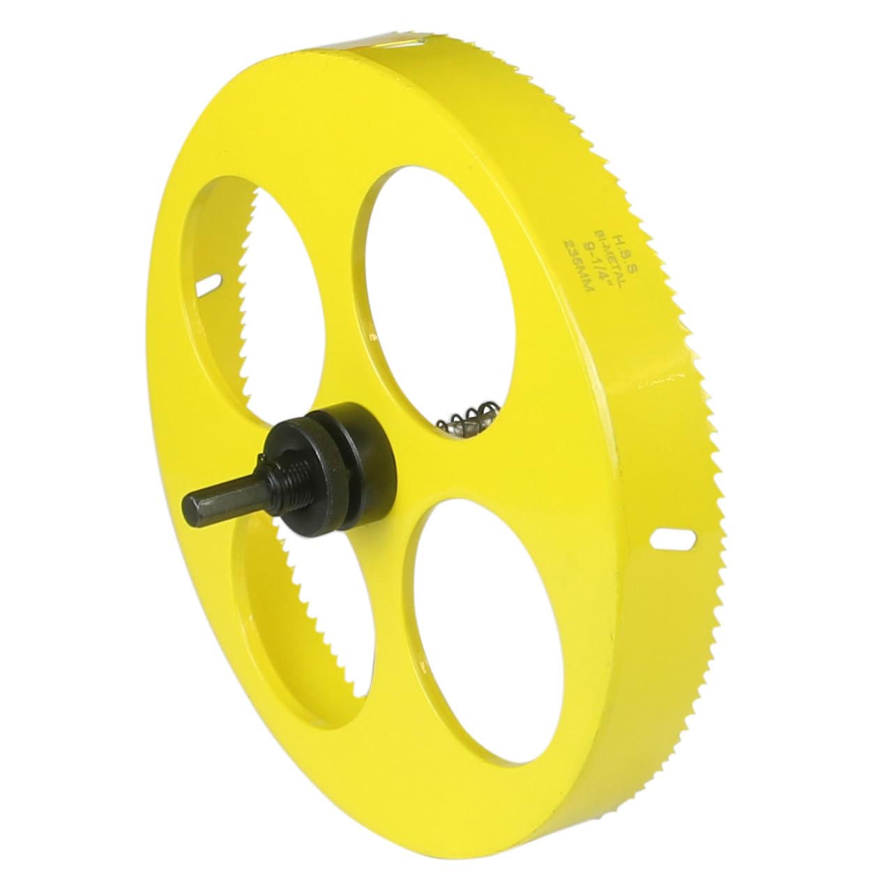 High grade hole saw 9-1/4 inch with 3/8'' Hex shank Mandrel,the cutting depth is about 1.24 inch (32mm),it can make 9-1/4 inch diamteter holes.
