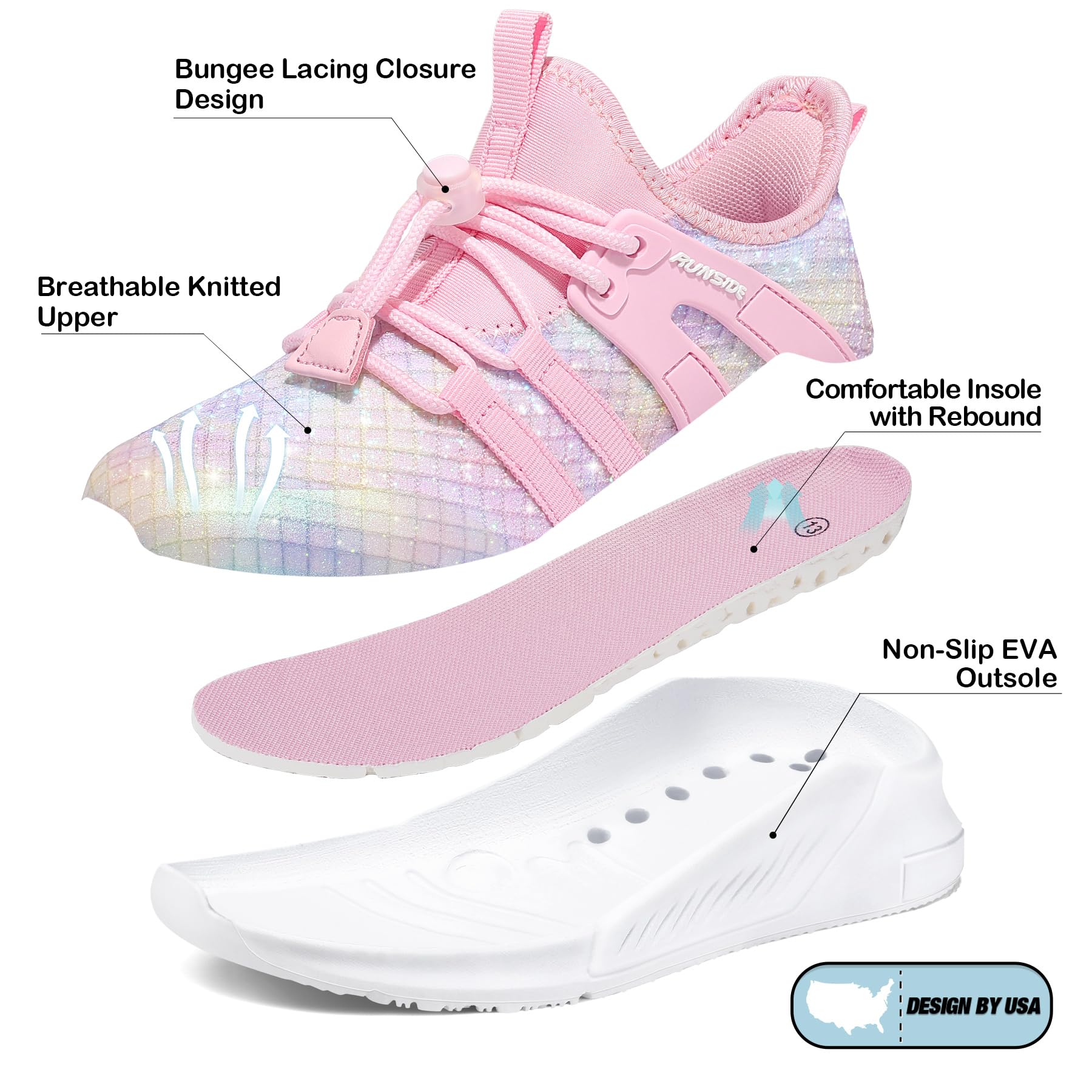 Non-slip Outsole: Safety and functionality go hand-in-hand with our kids' sneakers; The non-slip EVA outsole ensures a firm grip on various surfaces