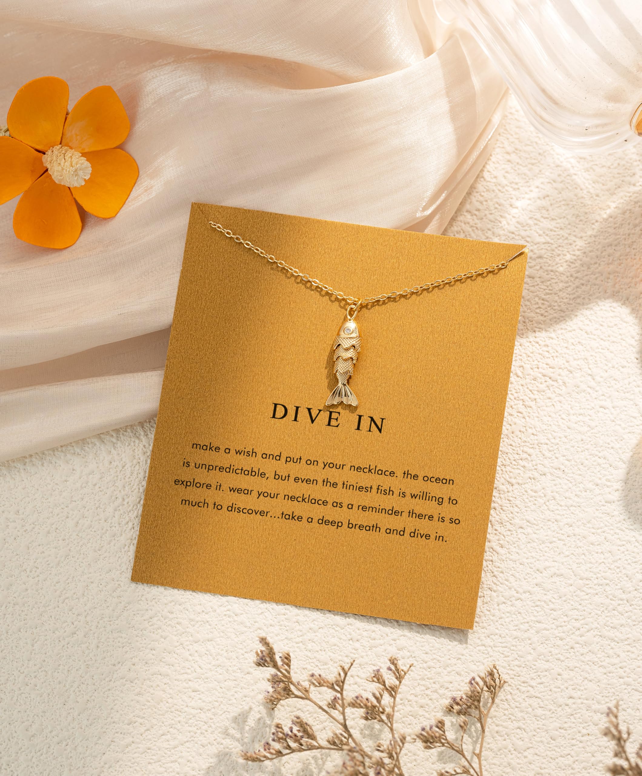 【Necklace Meaning】The ocean is unpredictable, but even the tiniest fish is willing to explore it. Wear your necklace as a reminder there is so much to discover...take a deep breath and dive in