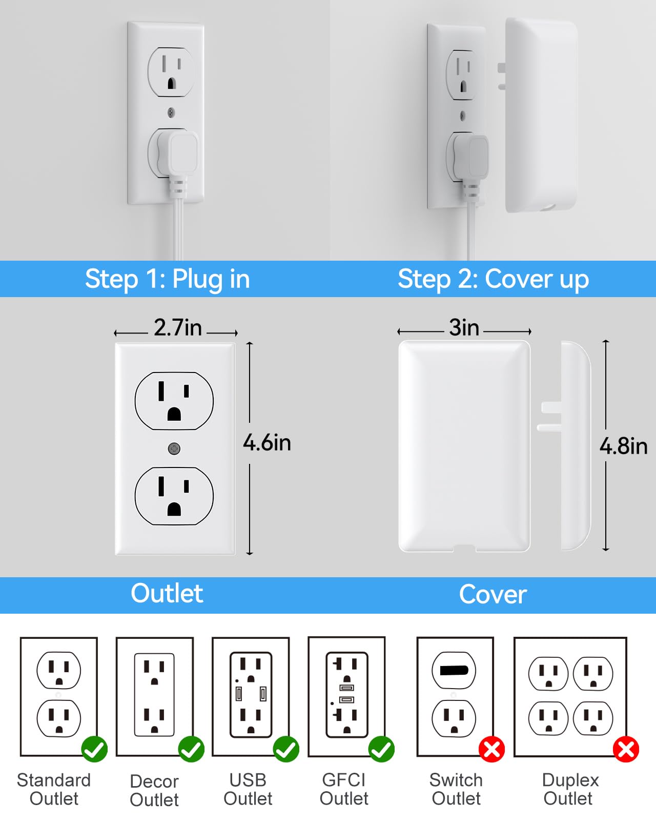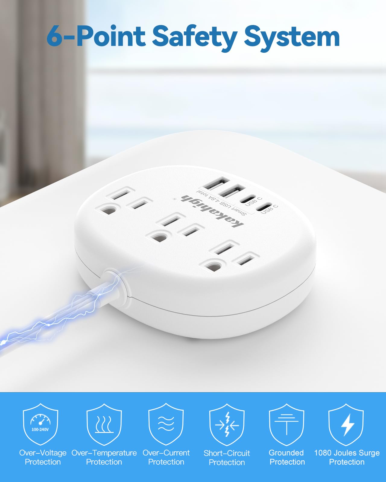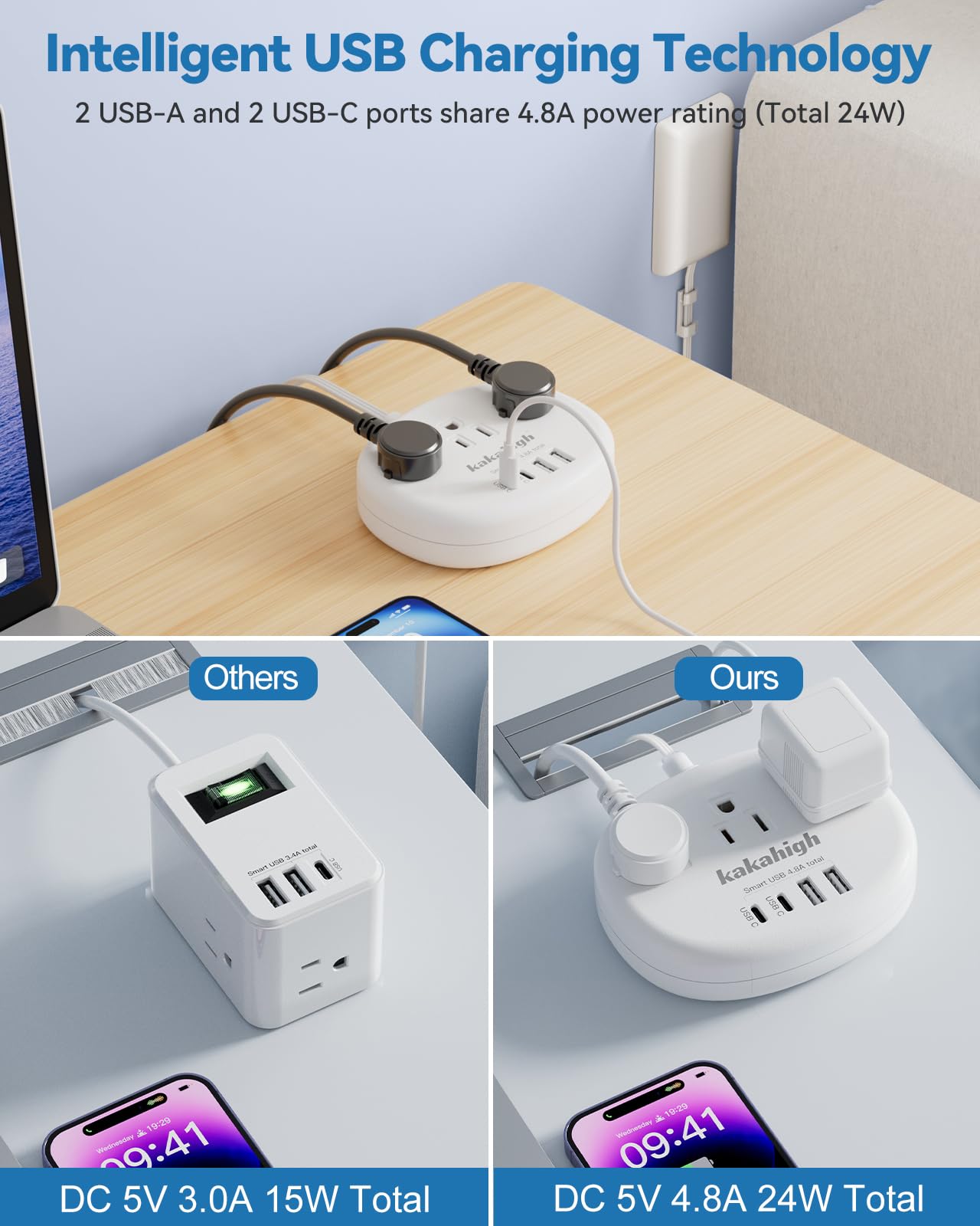 【Extension Cord with USB C Ports】Compare with other 15W power strips, the baby proof extension cord provice 2 usb-c for Apple devices, each can charge up to 5V/2.4A Max, all usb ports output is 5V/4.8A, 24W max. Outlet cover extension cord with smart charging technology, it can automatically detect your connected devices and can achieve faster charging efficiency, which would charge your devices WITHOUT a variety of converters.