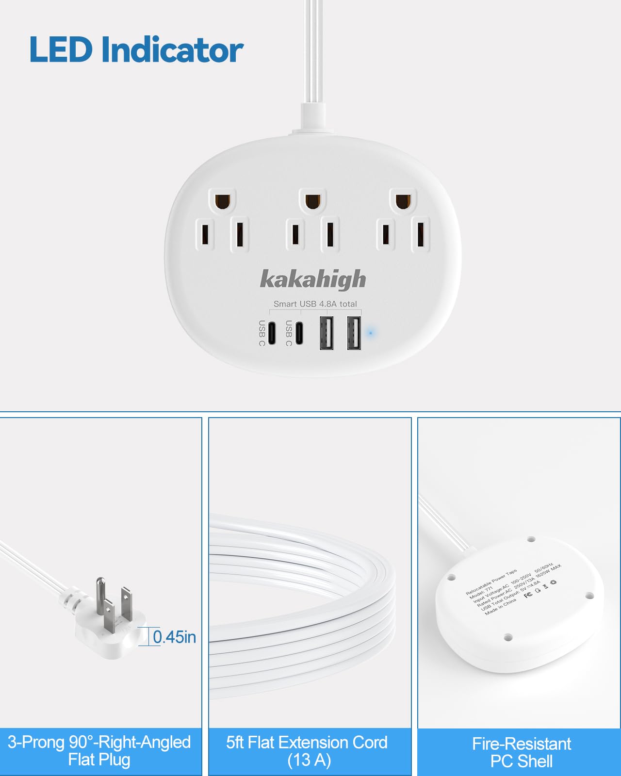 【Reliable Safety】Outlet concealer extension cord is made of high strength fire-resistance PC shell, making it fireproof up to 1382 F. High-end solid capacitors ensure complete protection against electrical short circuit, over heat, over charging, over current and over voltage danger.