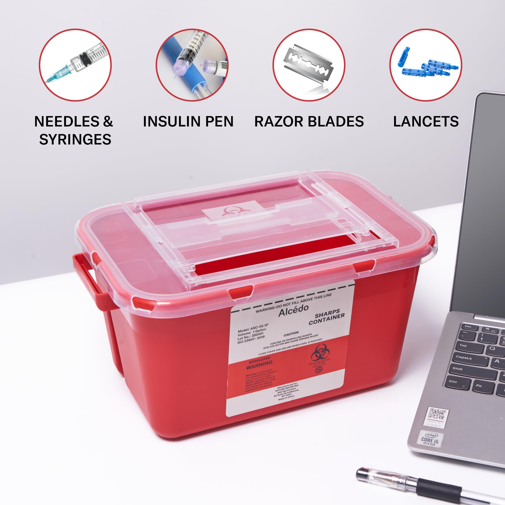 PERFECT FOR PROFESSIONAL AND HOME USE – The sharps container is ideal for use in hospitals, labs, and clinics or at home by diabetics who need a container to dispose of biohazard needles and syringes waste.