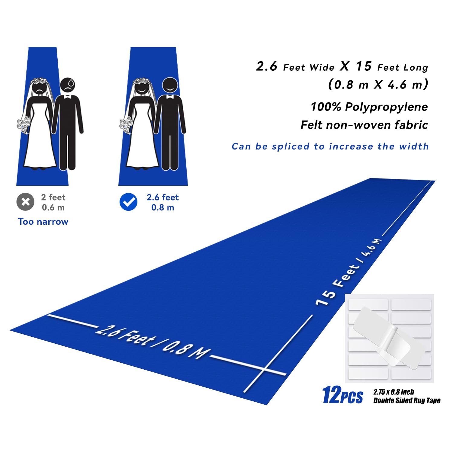 SUITABLE SIZE: We have designed a more suitable width, 2.6 ft (0.8m) X 15 ft (4.57m). Compared to the 2 ft (0.6m) width, It is more suitable for two adults to walk on it side by side. It is more able to blend in and accent your event site perfectly