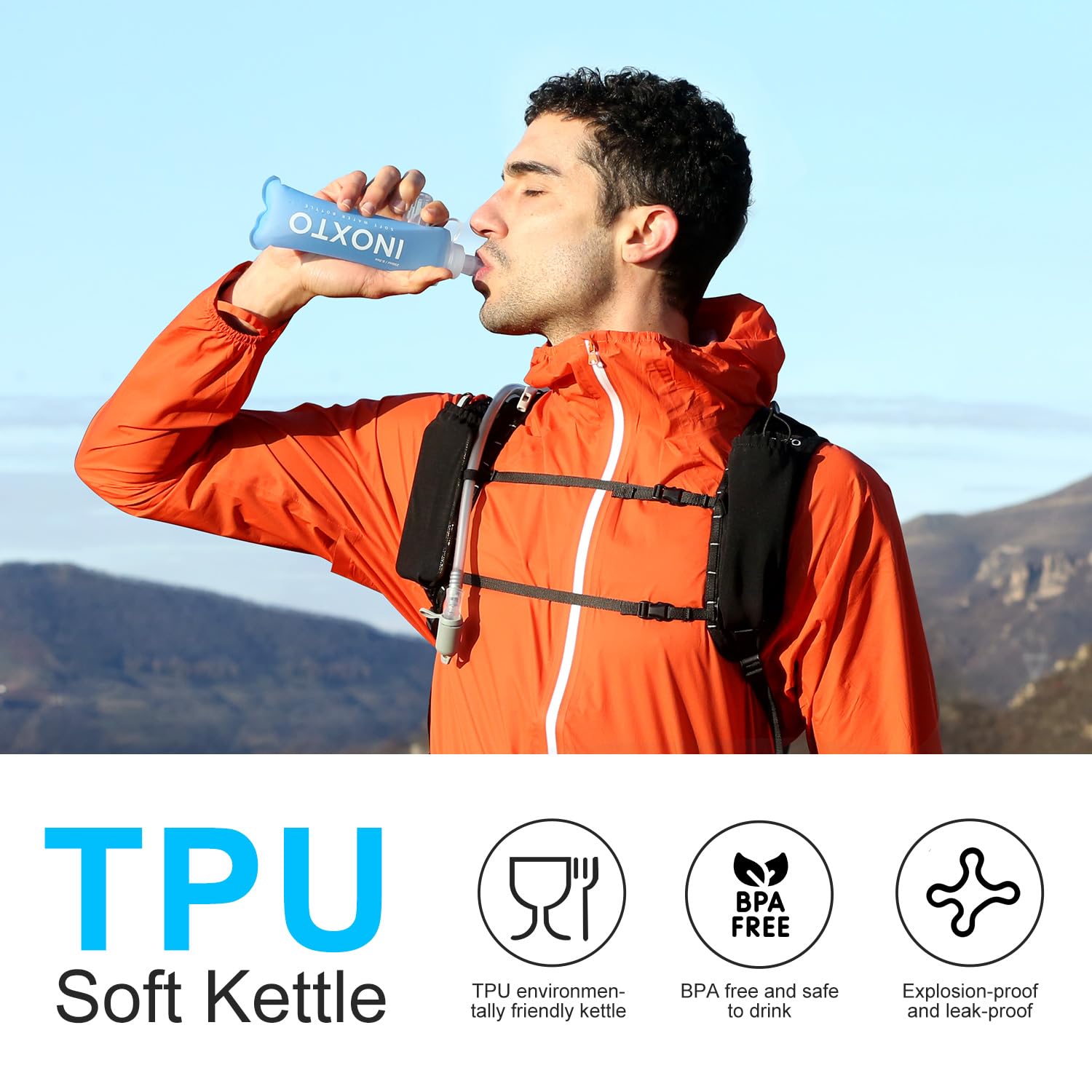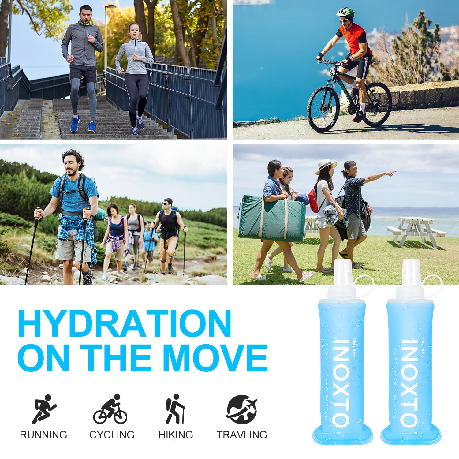 đ§ăCOLLAPSIBLE WATER BOTTLESă: INOXTO flexible water bottle is soft and foldable, easy to use, easy to store, let your running more easily;It can be easily folded or tucked into your pocket. Our collapsible water bottles are designed to hold minimal air so the water doesn't slosh around.