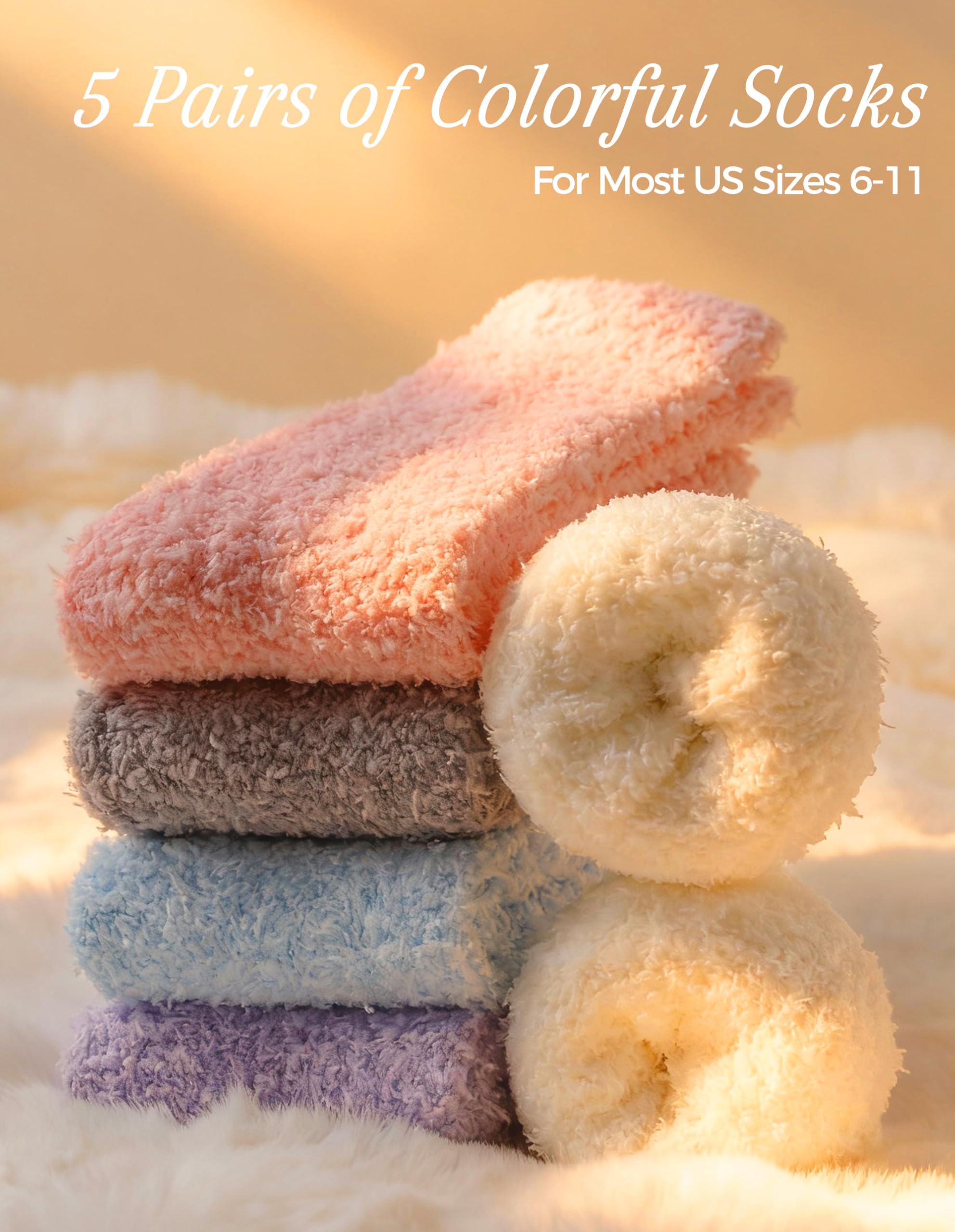 Excellent Value: Enjoy 5 pairs of premium-quality fuzzy socks in various colors, with elastic material provides a comfortable fit for most US sizes 6-11