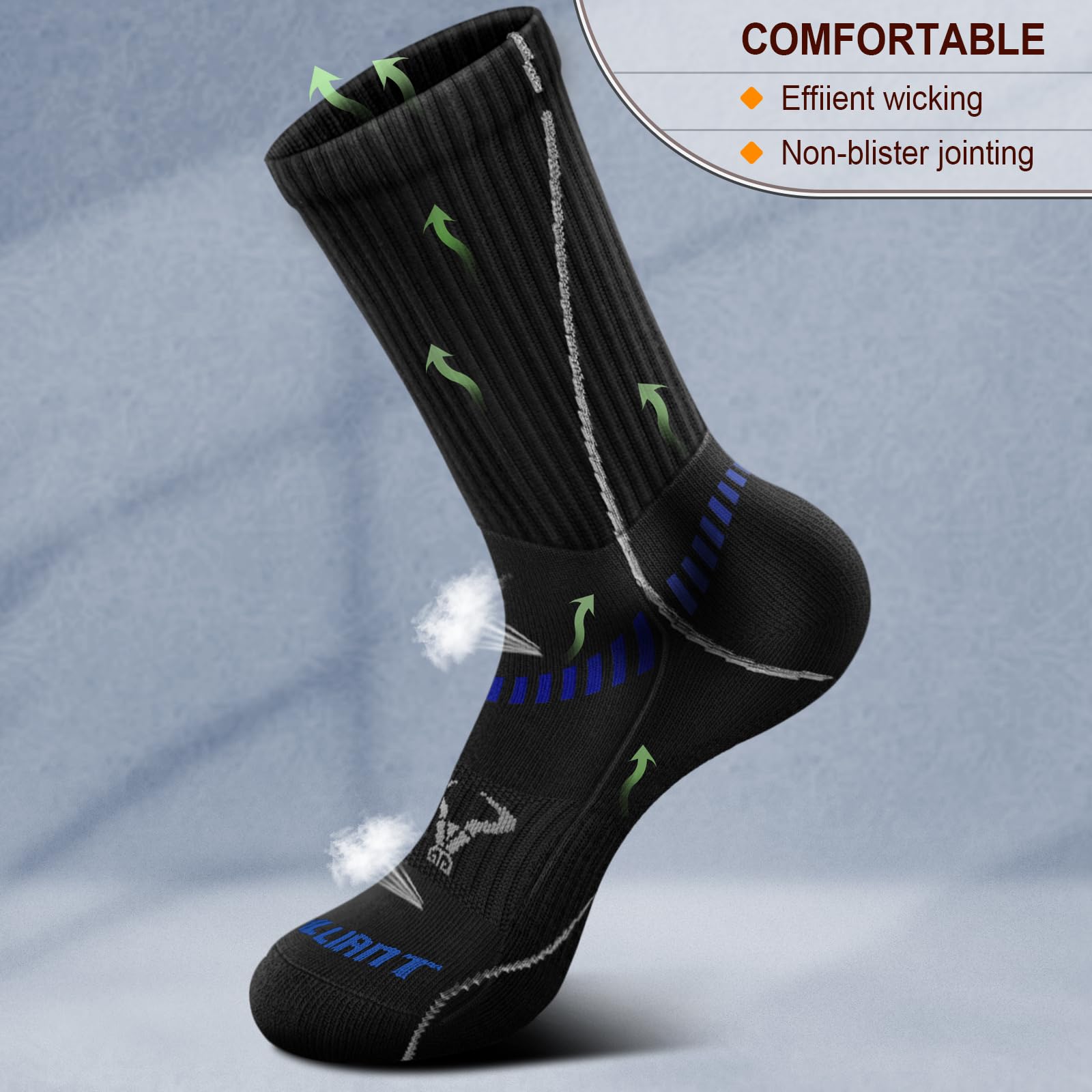BREATHABLE -- Particular stitching construction with the unique moisture-wicking yarns creates anefficient ventilating system, These Bulliant running socks can keep feet dry and comfortable all the day;