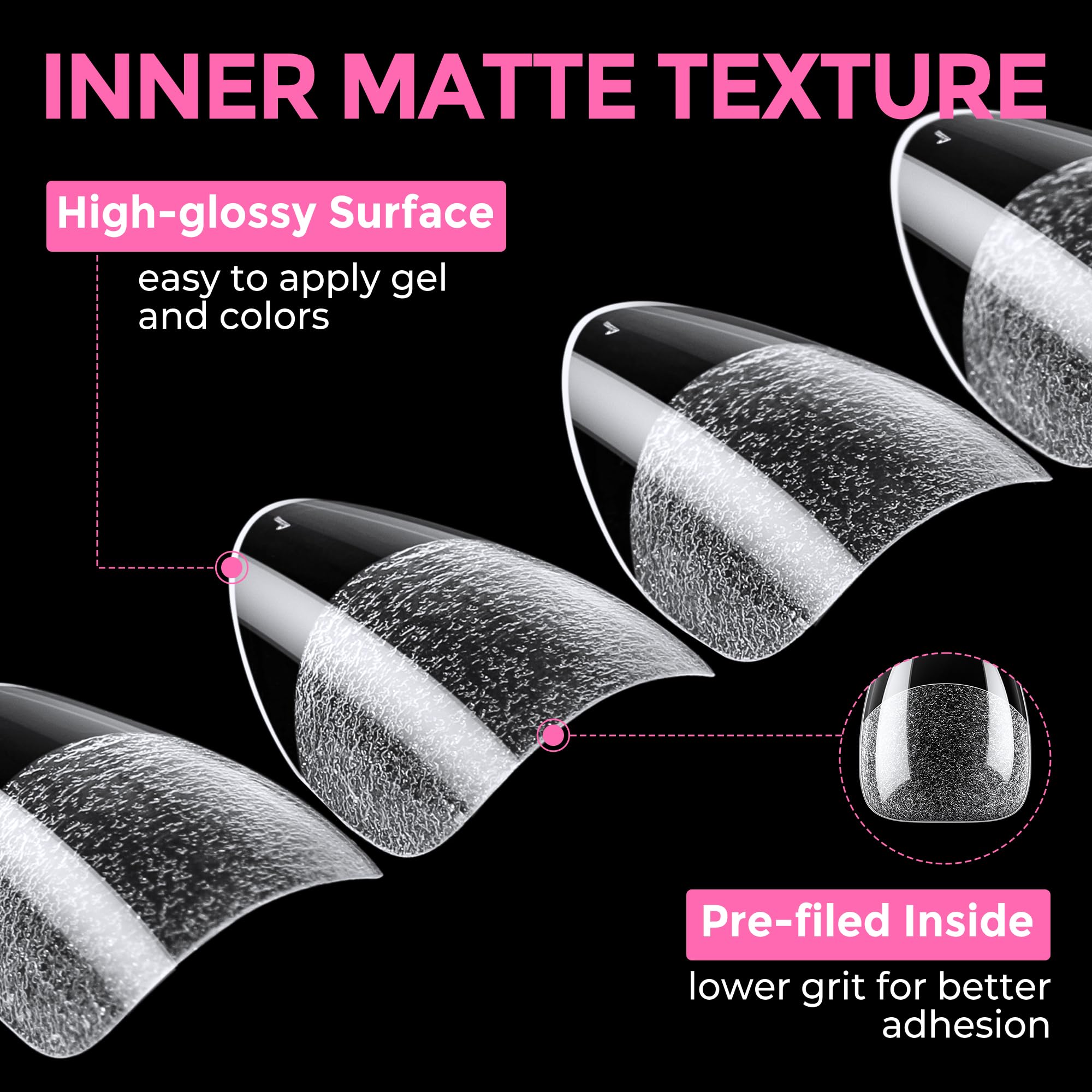 β€οΈEasy to Use: Our smooth edge of tips have a more shallow curve, convenient to press on nails beds tightly, without feeling uncomfortable "tightness", keep the color good without separation or exposure, your nails will look more naturally. Pre-shape tips no need file and saving much your time, more sturdy sticking.