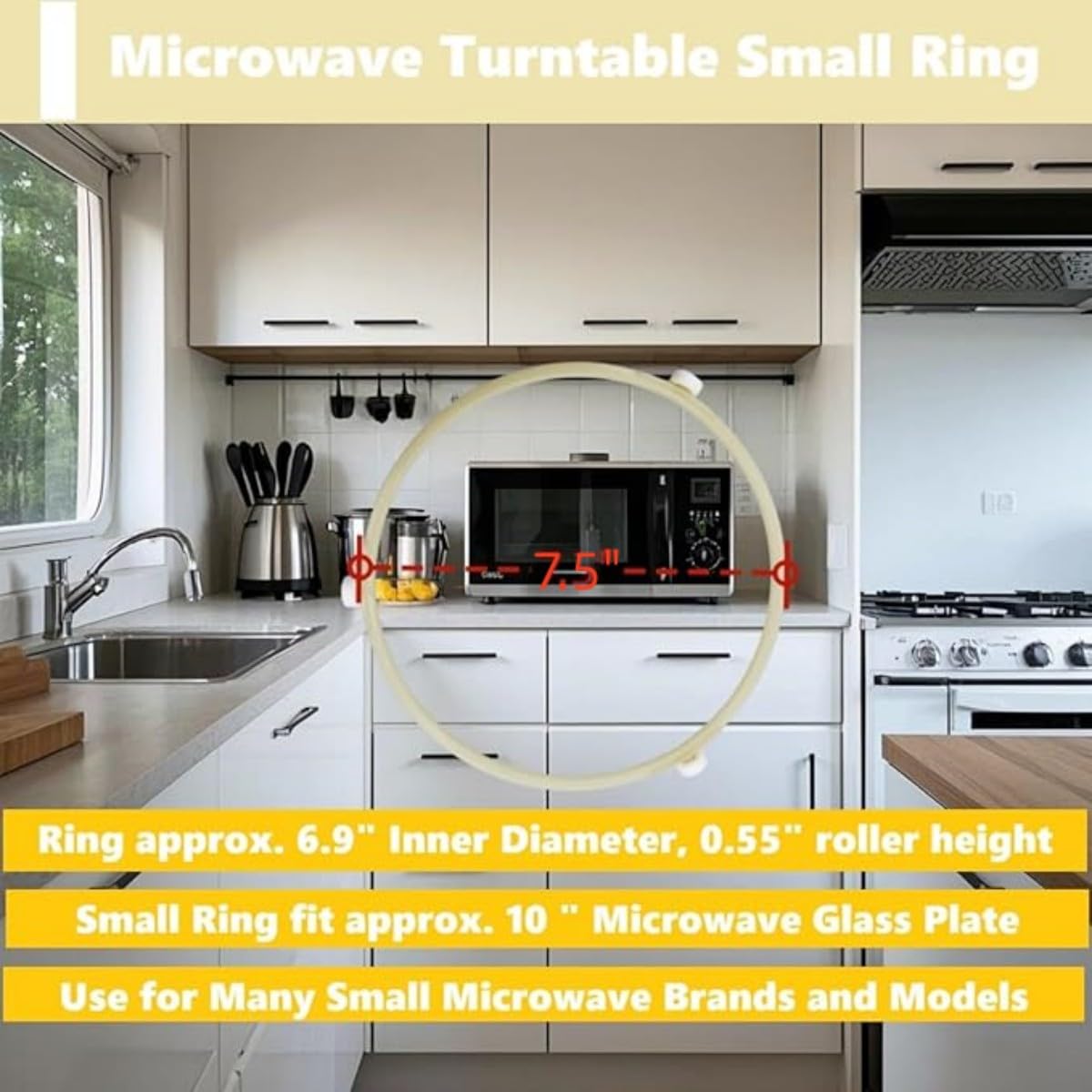 Brand-New,Includes (1) Microwave Turntable Ring approx. 7.5" outer Diameter, 14mm roller height .