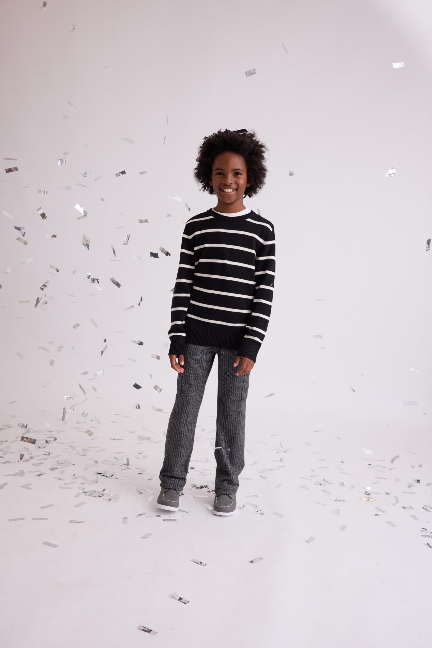 FIT & DESIGN: Rib-knit crew neck, long sleeves, rib-knit cuffs & hem