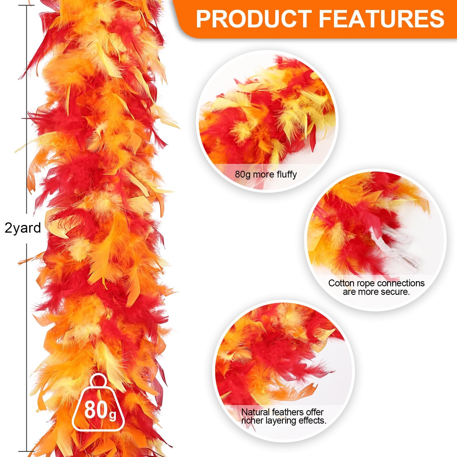 ❤️ Applications:These feather boas are perfect for dance performances,weddings,special events, Mardi Gras celebrations,Christmas parties, New Year’s Eve parties, Halloween parties, etc; also can be used on arts crafts project and holiday decoration.