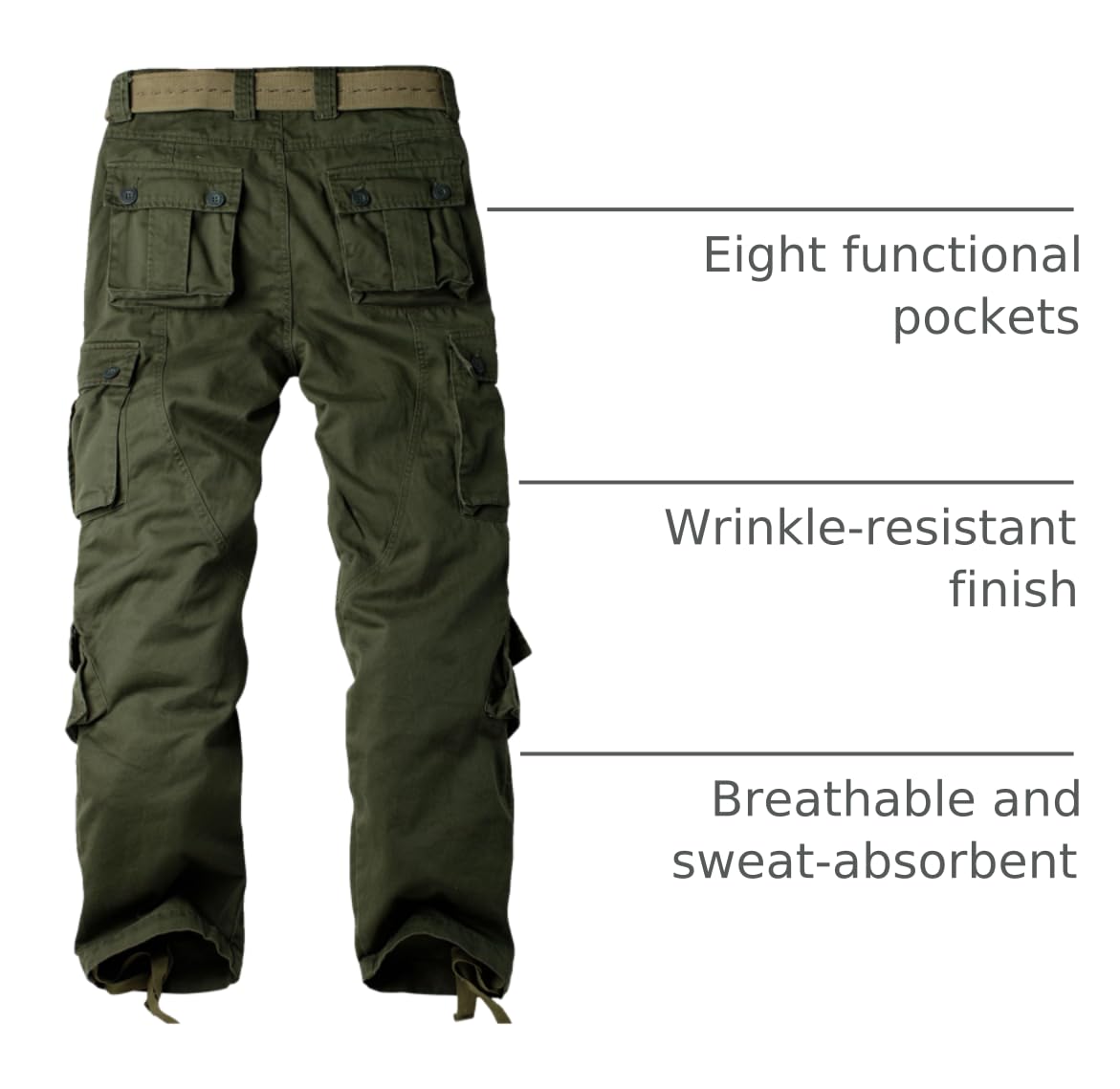 Product Material: Solid and camo cargo pants for men use 100% cotton fabric, treated for ease of care with a wrinkle-resistant finish and durability,it features non-slip, durable, comfortable, abrasion-resistant soft,breathable and sweat-absorbent,can repel the stains, liquids and soil keep you all day dry and clean.Relaxed fit military pants with zipper closure and straight leg,drawstring tie inside the ankle and the waist for comfort fit.