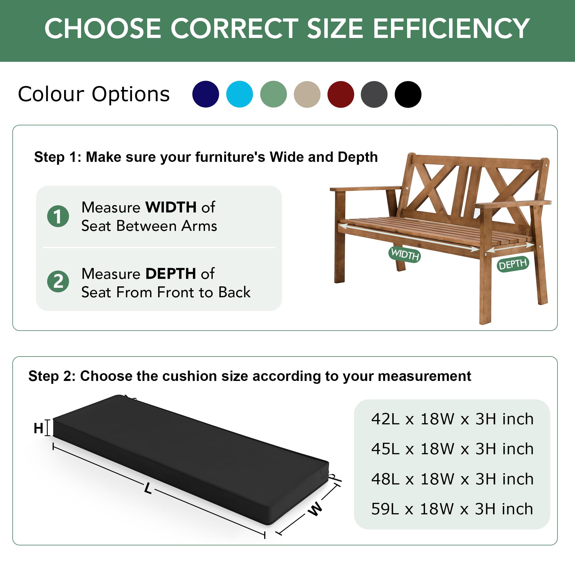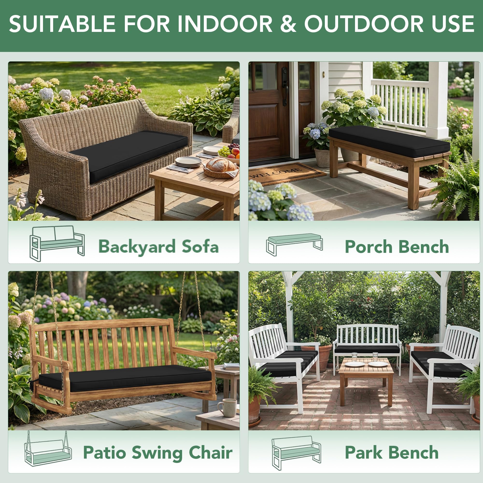 Perfect Size for Most Benchs: Package contains 1 piece patio cushion for outdoor furniture measures 42 x 18 inches with a 3-inch thickness, providing a comfortable fit for a variety of seating options such as garden benches, front porch swings,outdoor picnic bench and patio furniture. Make sure to measure your furniture beforehand to ensure the perfect fit.
